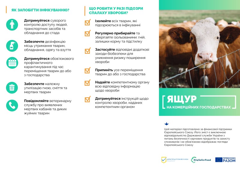 Держпродспоживслужба у відповідь на спалах швидко запровадила заходи, щоб не допустити занесення хвороби на територію України. Це заборона на ввезення живих тварин, які сприйнятливі до вірусу та продукції від них, крім того, заборона ввезення репродуктивного матеріалу.