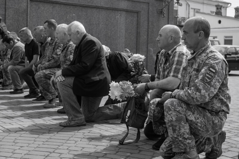 Після завершення панахиди домовину з тілом Героя прощальною ходою пронесли Театральним майданом. У цей момент лучани, віддаючи останню шану загиблому, утворили живий коридор і прихилили коліна перед захисником. Біля фотостенду “Герої Небесної Сотні – Загинули за єдність України” скорботна процесія зупинилася і виконала Державний Гімн.