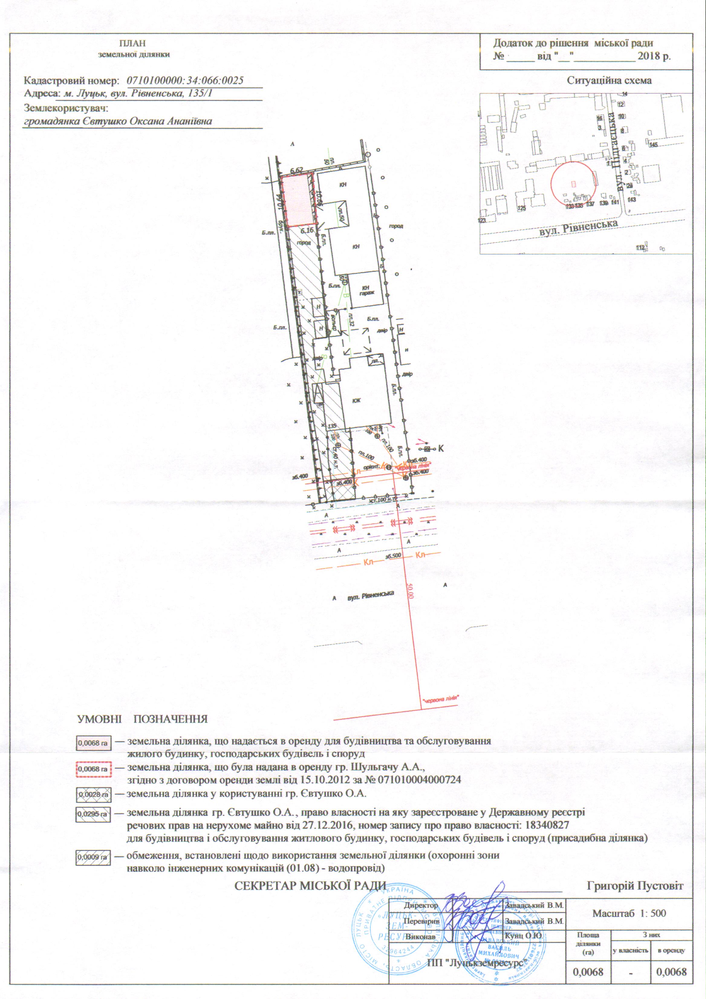 2. Надати громадянці Євтушко Оксані Ананіївні земельну ділянку на вул. Рівненській, 135/1, на умовах оренди строком на 25 років з дати укладення договору оренди землі, площею 0,0068 га, кадастровим номером 0710100000:34:066:0025, для будівництва та обслуговування жилого будинку, господарських будівель і споруд, з земель комунальної власності, згідно з додатком.