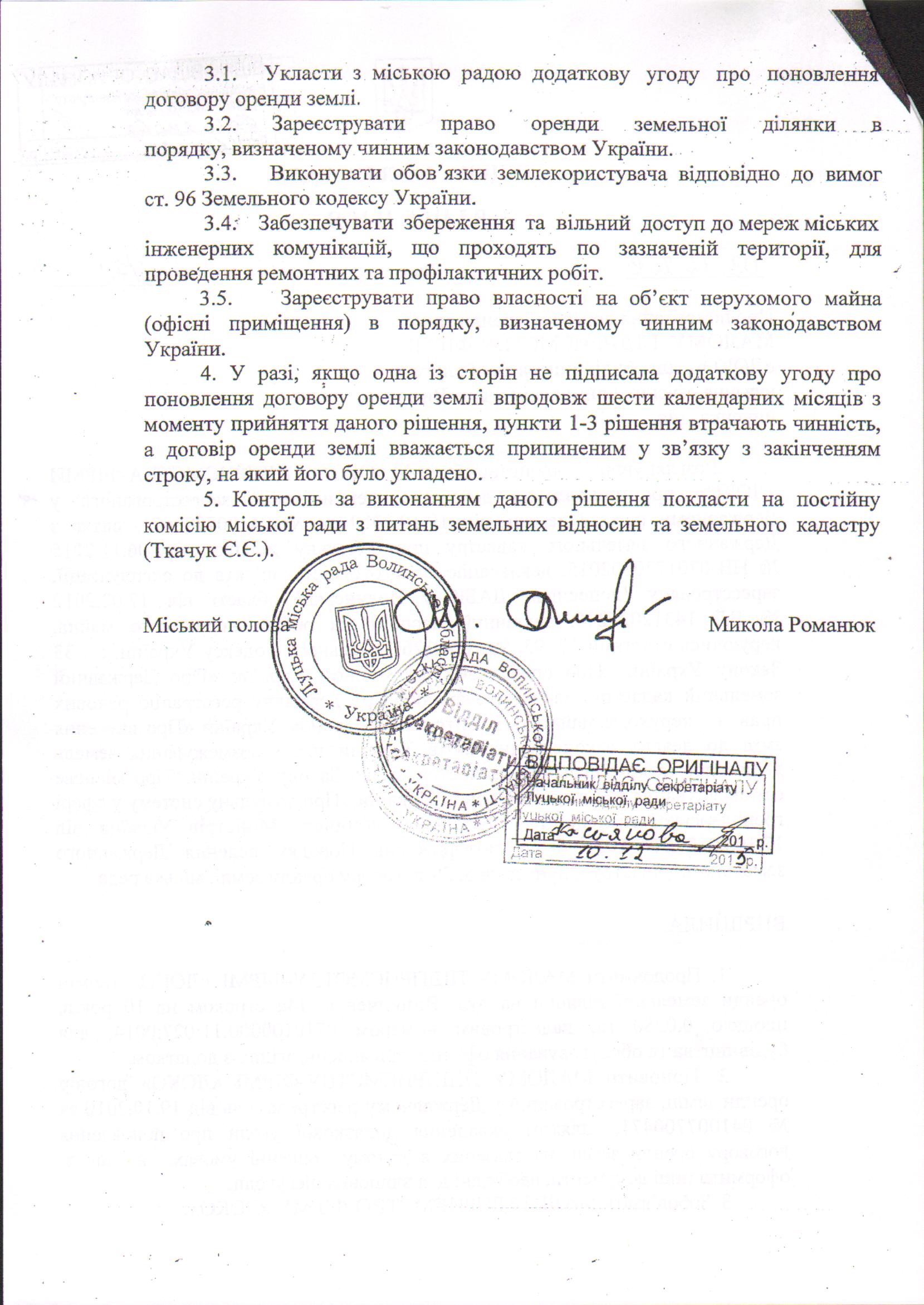 3. Контроль за виконанням даного рішення покласти на постійну комісію міської ради з питань земельних відносин та земельного кадастру (Ткачук Є.Є.).