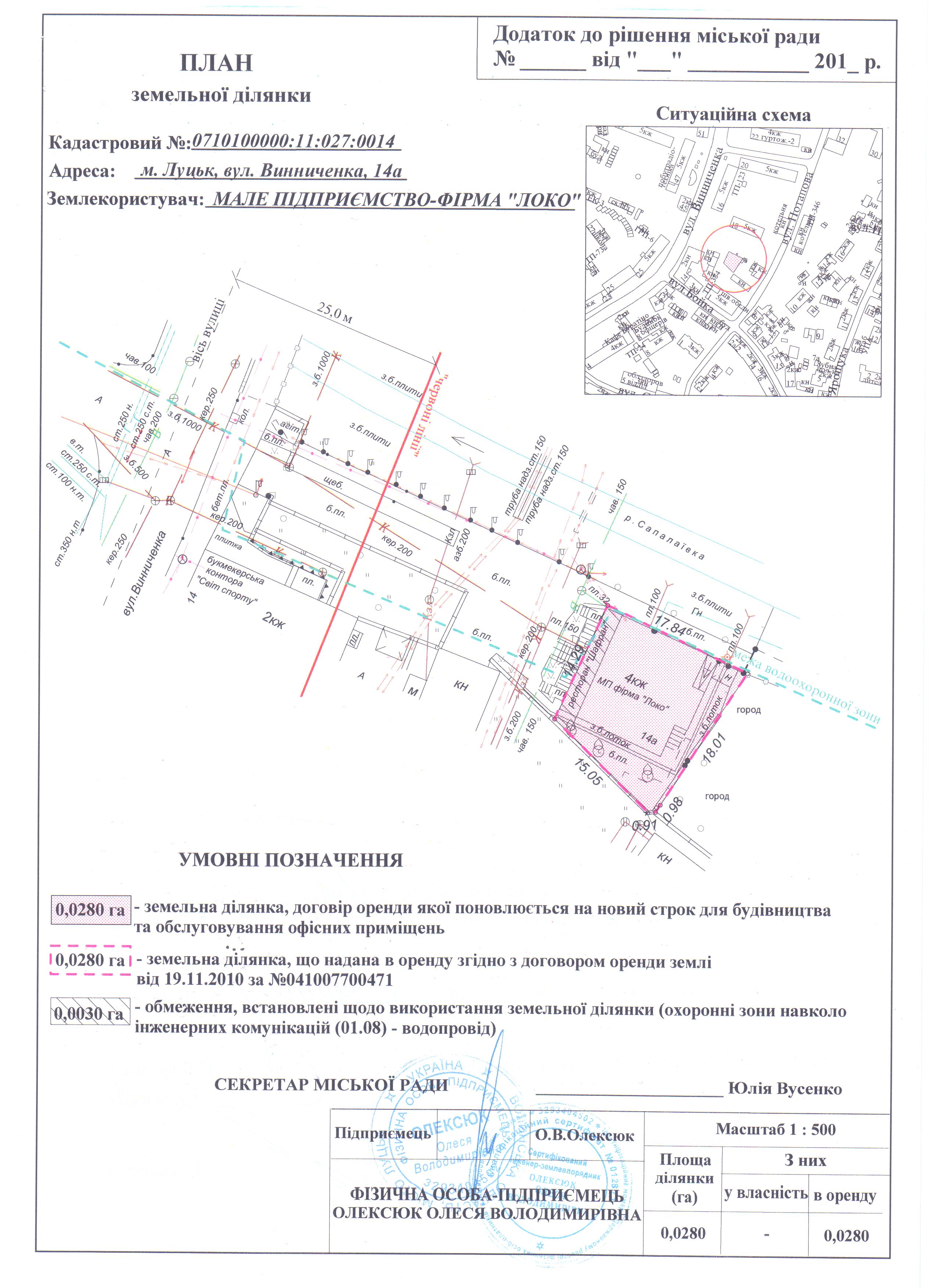 2. Внести зміни в додаткову угоду про поновлення договору оренди землі, зареєстрованого у Державному реєстрі земель від 19.11.2010 за № 041007700471, від 16.05.2016, укладеної на підставі рішення міської ради від 03.12.2015 № 1/71 «Про поновлення договору оренди землі МАЛОМУ ПІДПРИЄМСТВУ-ФІРМІ «ЛОКО» для будівництва та обслуговування офісних приміщень на вул. Винниченка, 14а».