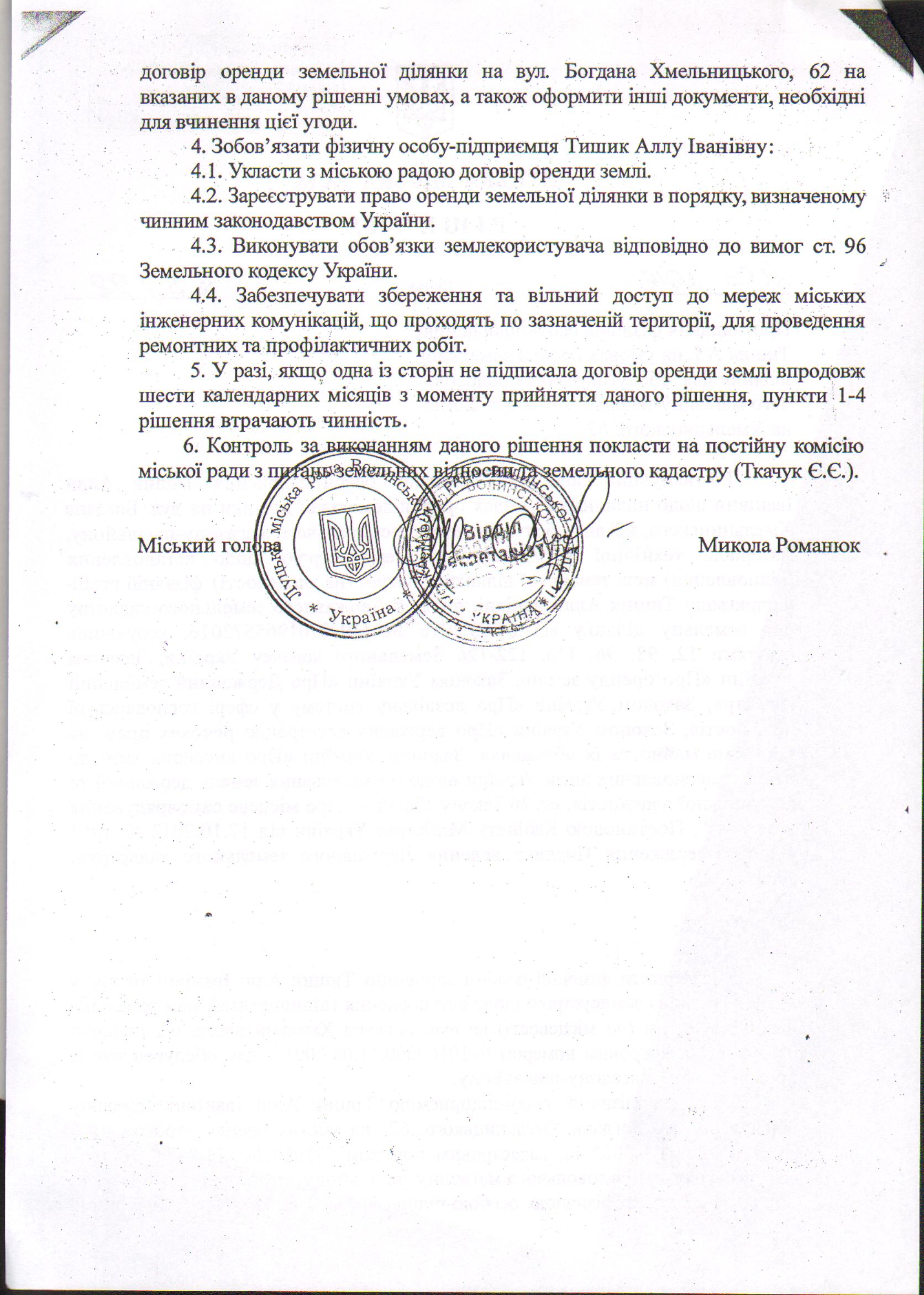 2. Контроль за виконанням даного рішення покласти на постійну комісію міської ради з питань земельних відносин та земельного кадастру (Ткачук Є.Є.).