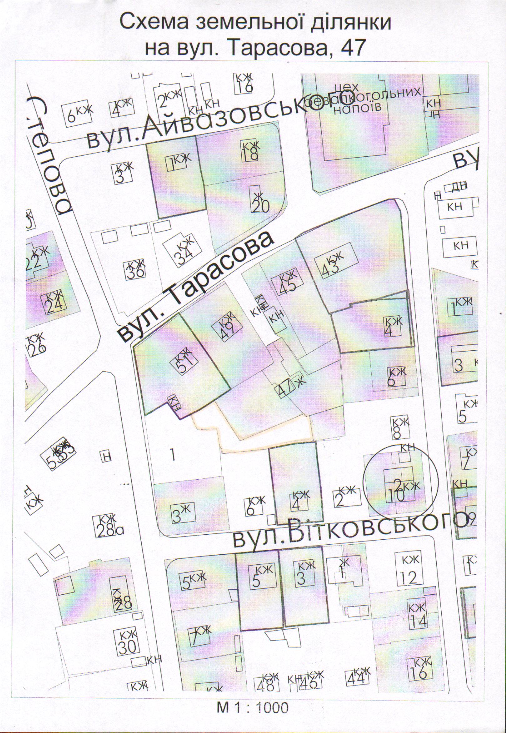 1. Припинити громадянці Кашинській Ганні Кононівні право користування земельною ділянкою площею 0,0599 га, кадастровим номером 0710100000:31:041:0028, на вул. Тарасова, 47, наданої на умовах оренди для обслуговування жилого будинку, господарських будівель і споруд, за взаємною згодою сторін.