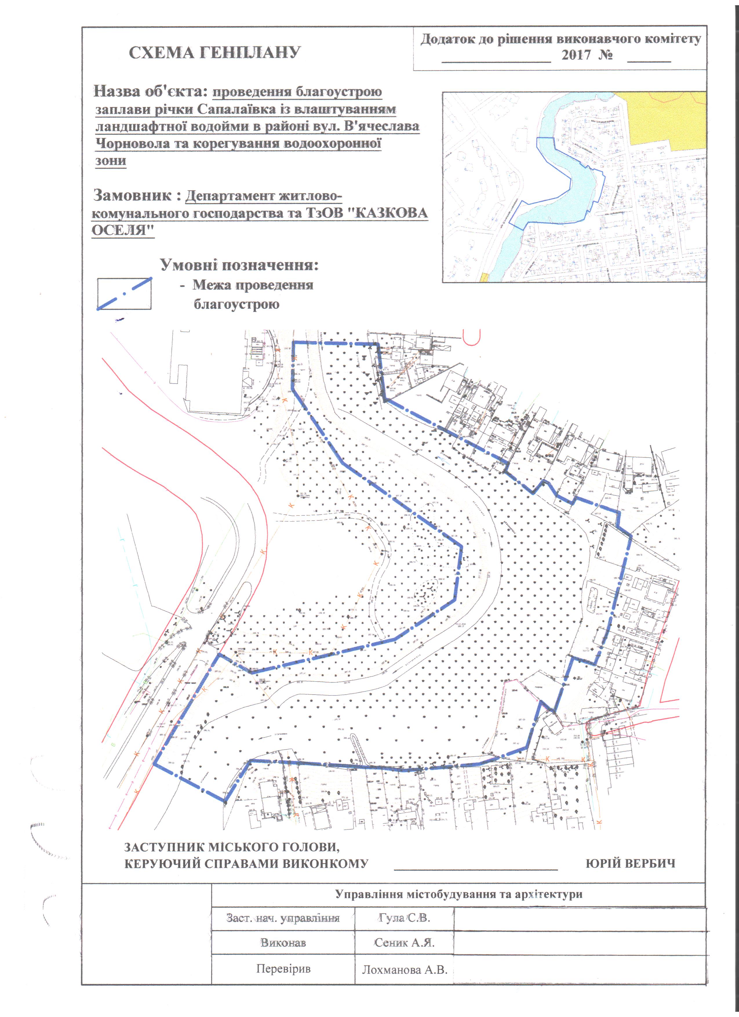 - «Благоустрій заплави річки Сапалаївка із влаштуванням ландшафтної водойми в районі вулиці Чорновола в м. Луцьку», розробленого ПрАТ «Інститут «Волиньводпроект», з корегуванням водоохоронної зони.