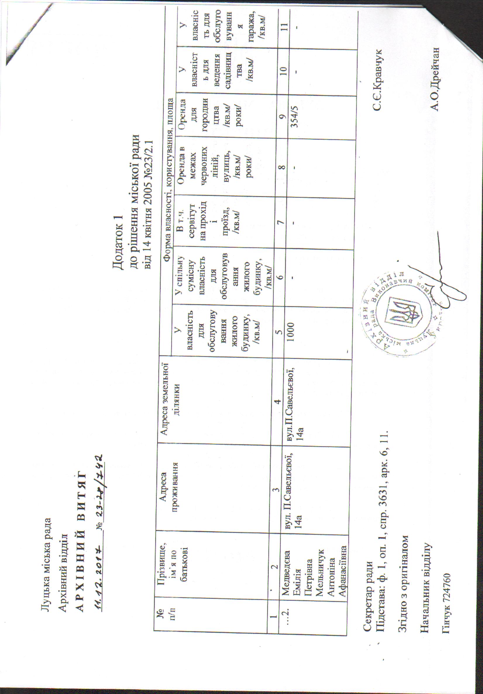 1. Скасувати підпункт 9 пункту 2 додатку до рішення Луцької міської ради від 14.04.2005 № 23/2.1 “Про передачу у власність громадянам міста земельних ділянок для обслуговування жилого будинку, господарських будівель і споруд та ведення садівництва”.