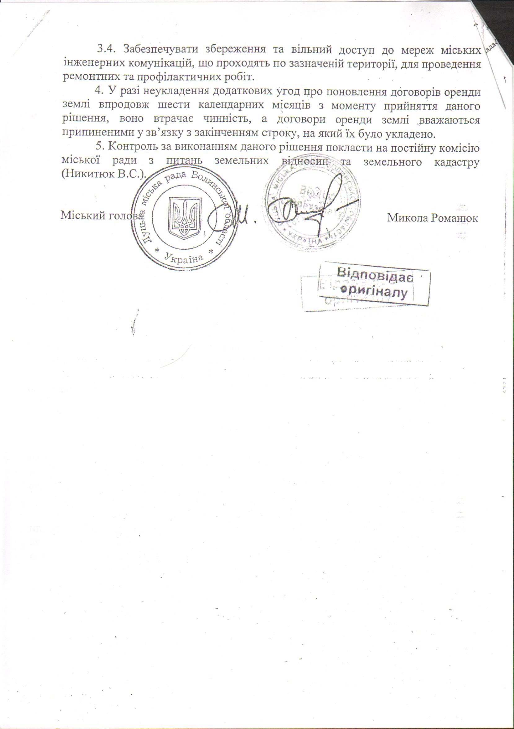 5. У разі, якщо одна із сторін не підписала договір оренди землі впродовж шести календарних місяців з моменту прийняття даного рішення, пункти 1-4 рішення втрачають чинність.