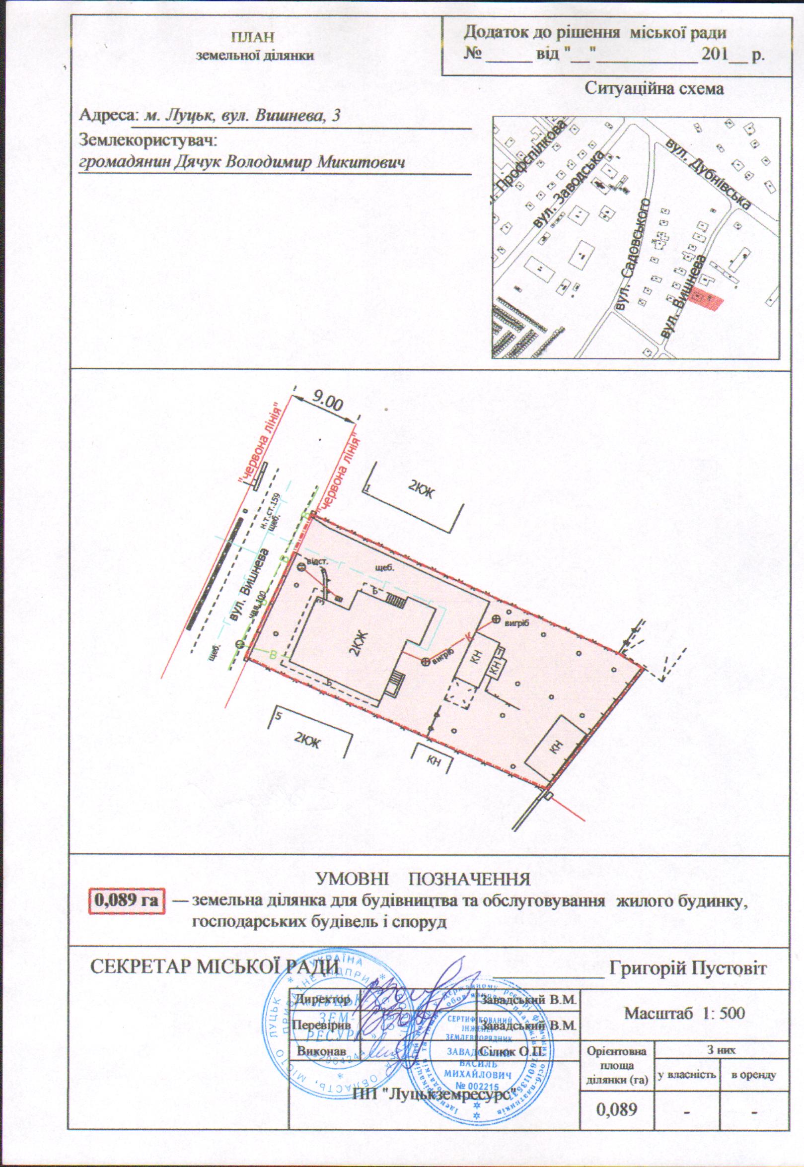 Розглянувши заяву громадянина Дячука Володимира Микитовича про надання дозволу на розроблення технічної документації із землеустрою щодо встановлення (відновлення) меж земельної ділянки в натурі (на місцевості) на вул. Вишневій, 3, технічний паспорт на об’єкт нерухомого майна, договір купівлі-продажу незакінченого жилого будинку, виписку із рішення виконавчого комітету Луцької міської Ради народних депутатів, витяги з рішень виконавчого комітету Луцької міської ради народних депутатів, договір про надання у безстрокове користування земельної ділянки для будівництва індивідуального житлового будинку на праві особистої власності, керуючись статтями 12, 79-1, 96, 116, 118, 120, 121 Земельного кодексу України, Законом України «Про внесення змін до деяких законодавчих актів України щодо розмежування земель державної та комунальної власності», Законом України «Про землеустрій», Законом України «Про Державний земельний кадастр», Постановою Кабінету Міністрів України від 17.10.2012 № 1051 «Про затвердження Порядку ведення Державного земельного кадастру», ст. 26 Закону України «Про місцеве самоврядування в Україні», Генеральним планом міста Луцька, затвердженим рішенням міської ради від 24.06.2009 № 42/1 «Про затвердження Генерального плану міста», планом зонування міста Луцька, затвердженим рішенням міської ради від 25.02.2015 № 71/13 «Про затвердження плану зонування території міста Луцька», міська рада