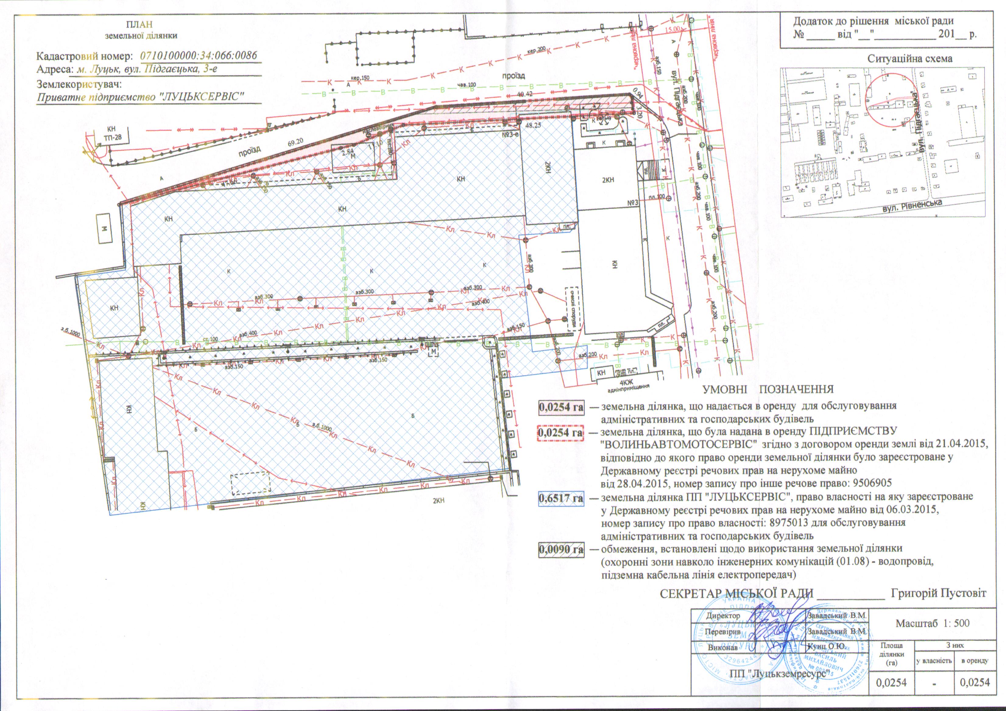 3. Укласти з Приватним підприємством “ЛУЦЬКСЕРВІС” договір оренди земельної ділянки на вул. Підгаєцькій, 3-е на вказаних в даному рішенні умовах, а також оформити інші документи, необхідні для вчинення цієї угоди.