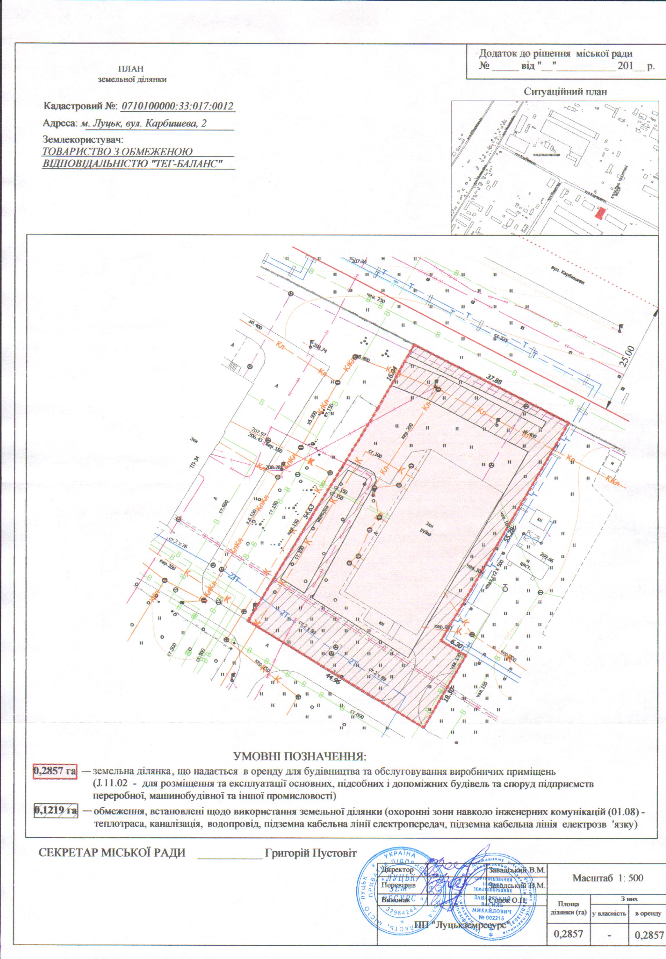 Про надання ТОВ «ТЕГ-БАЛАНС» на умовах оренди земельної ділянки для будівництва та обслуговування виробничих приміщень на вул. Карбишева, 2 (площею 0,2857 га)