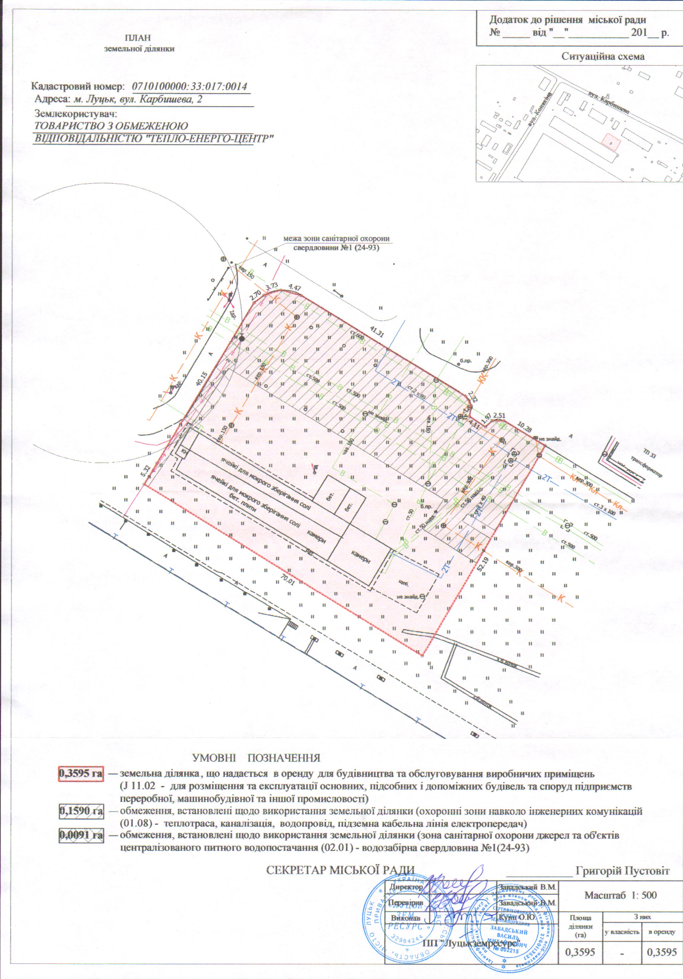 3. Укласти з ТОВАРИСТВОМ З ОБМЕЖЕНОЮ ВІДПОВІДАЛЬНІСТЮ «ТЕПЛО-ЕНЕРГО-ЦЕНТР» договір оренди земельної ділянки на вул. Карбишева, 2 на вказаних в даному рішенні умовах, а також оформити інші документи, необхідні для вчинення цієї угоди.