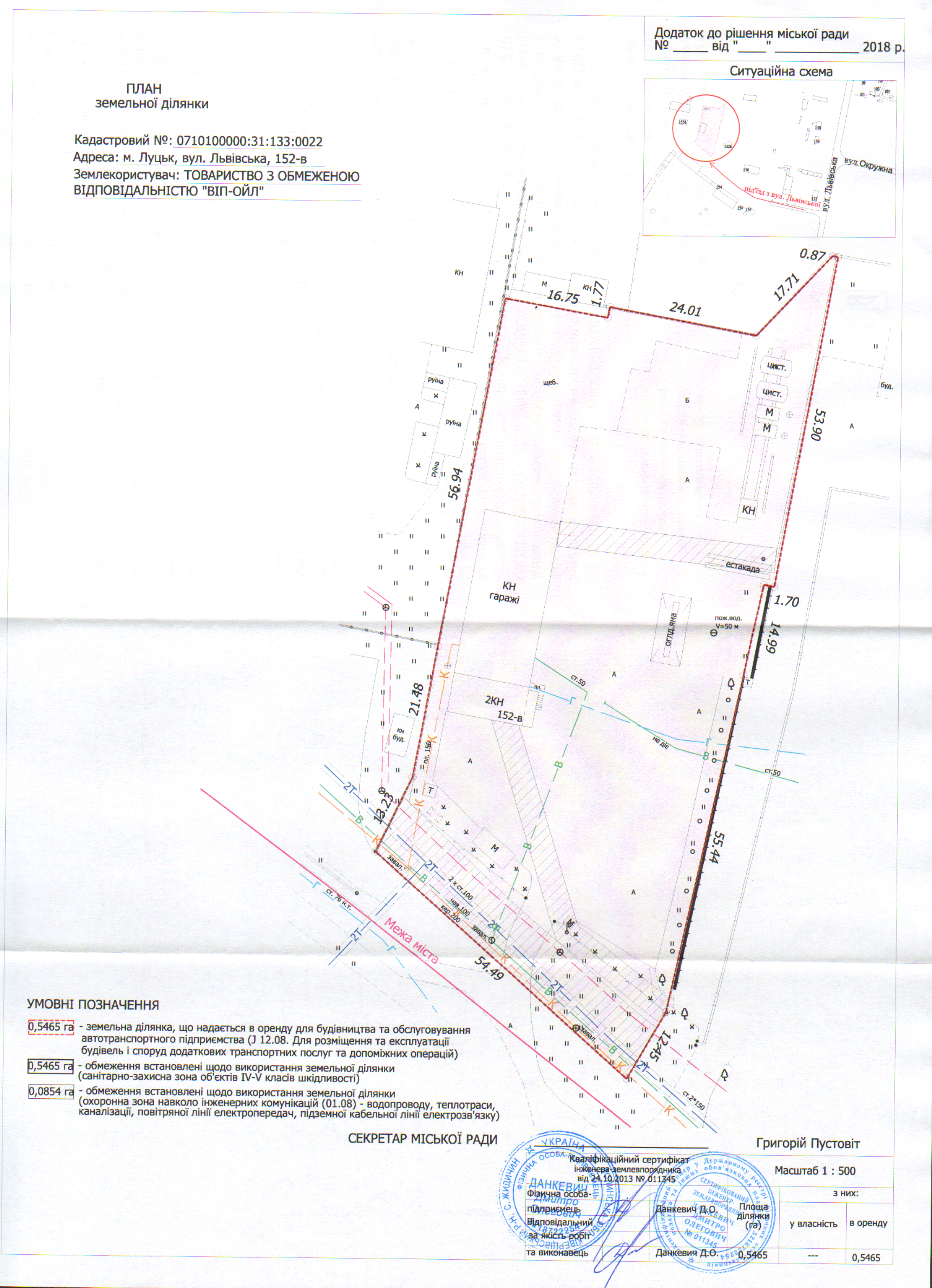 3. Укласти з ТОВАРИСТВОМ З ОБМЕЖЕНОЮ ВІДПОВІДАЛЬНІСТЮ «ВІП-ОЙЛ» договір оренди земельної ділянки на вул. Львівській, 152-в на вказаних в даному рішенні умовах, а також оформити інші документи, необхідні для вчинення цієї угоди.