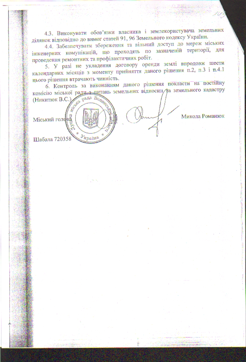 4. Контроль за виконанням даного рішення покласти на постійну комісію міської ради з питань земельних відносин та земельного кадастру (Ткачук Є.Є.).