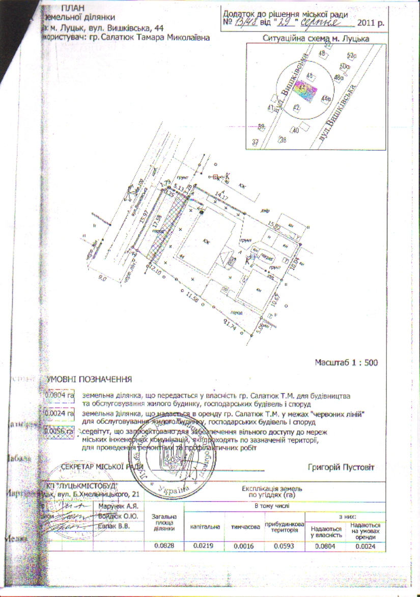 Розглянувши клопотання громадян Салатюк Тамари Миколаївни, Чирук Валентини Михайлівни про надання дозволу на розроблення технічної документації із землеустрою щодо встановлення (відновлення) меж земельної ділянки в натурі (на місцевості) на вул. Вишківській, 44, враховуючи правовстановлюючі документи на об’єкти нерухомого майна на вул. Вишківській, 44 громадян Салатюк Тамари Миколаївни, Чирук Валентини Михайлівни: договір про надання у безстрокове користування земельної ділянки від 14.02.1973 за № 1-1447, акт приймання в експлуатацію від 27.07.1989 за № 311, відповідно до яких право власності на 18/100 часток житлового будинку зареєстроване 10.08.1989 за № 6032; договір дарування 82/100 часток у праві власності житлового будинку від 10.04.2012 за № 841, відповідно до якого право власності зареєстроване від 21.05.2012, реєстраційний номер 36186458; договір дарування 82/100 частки у праві власності на земельну ділянку від 10.04.2012 за № 843, відповідно до якого державний акт на право власності на земельну ділянку площею 0,0804 га зареєстровано в Книзі записів реєстрації державних актів на право власності на землю та на право постійного користування землею, договорів оренди землі 07.09.2012 за № 071010001001626, керуючись статтями 12, 79-1, 93, 116, 120, 122-123 Земельного кодексу України, Законом України «Про оренду землі», Законом України «Про внесення змін до деяких законодавчих актів України щодо розмежування земель державної та комунальної власності», ст. 55 Закону України «Про землеустрій», ст. 26 Закону України «Про місцеве самоврядування в Україні», п. 107 Постанови Кабінету Міністрів України від 17.10.2012 № 1051 «Про затвердження Порядку ведення Державного земельного кадастру», міська рада