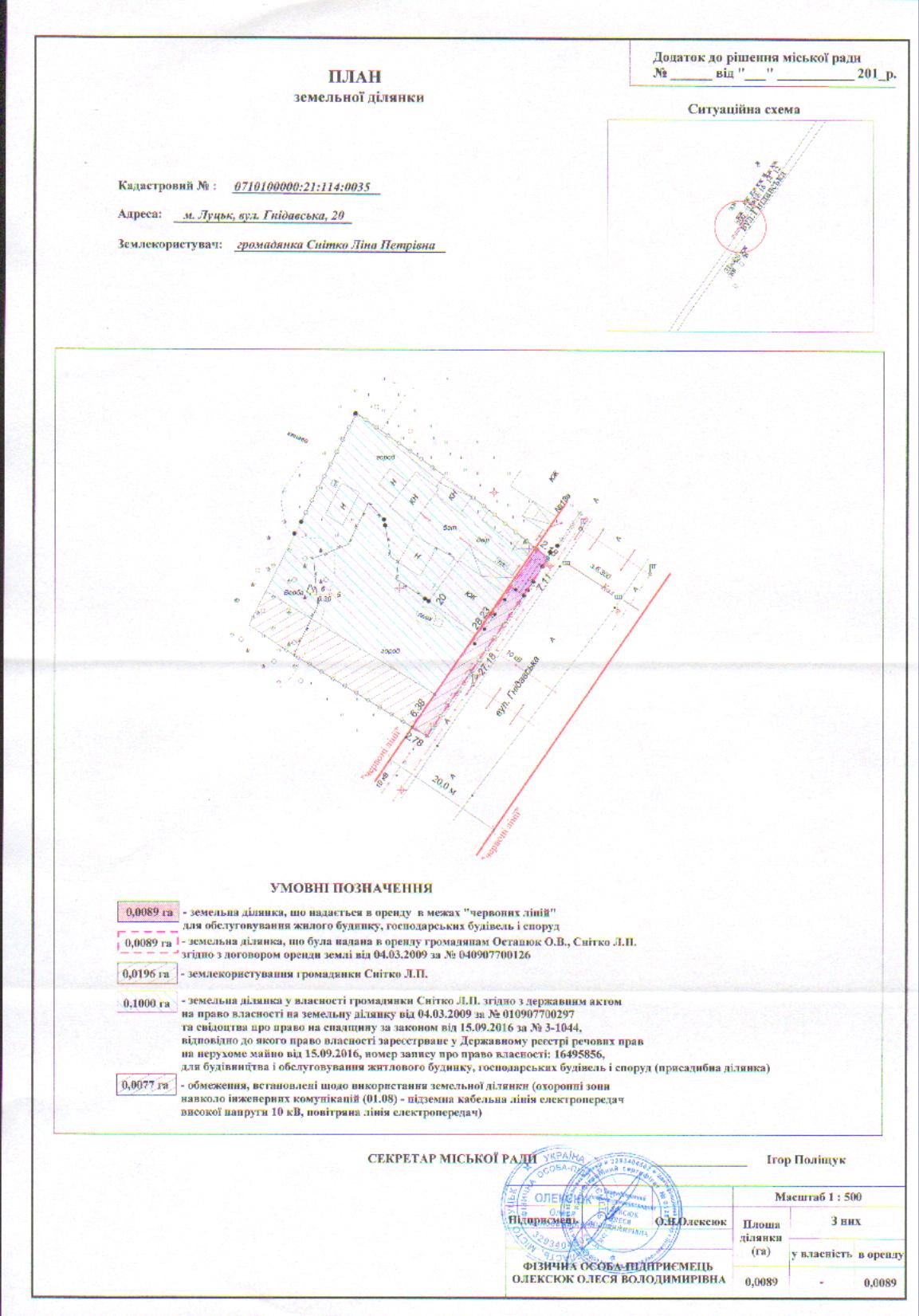 3. Укласти з громадянкою Снітко Ліною Петрівною договір оренди земельної ділянки на вул. Гнідавській, 20 на вказаних в даному рішенні умовах, а також оформити інші документи, необхідні для вчинення цієї угоди.