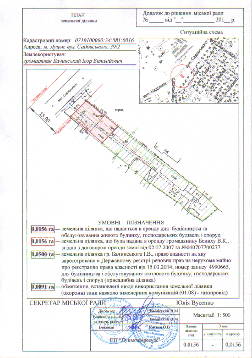 Про надання громадянину Бачинському І.В. на умовах оренди земельної ділянки для будівництва та обслуговування жилого будинку, господарських будівель і споруд на вул. Садовського, 39/2 (площею 0,0156 га)