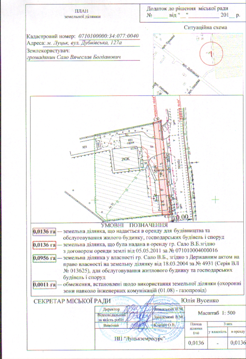 3. Укласти з громадянином Сало Вячеславом Богдановичем договір оренди земельної ділянки на вул. Дубнівській, 127а на вказаних в даному рішенні умовах, а також оформити інші документи, необхідні для вчинення цієї угоди.