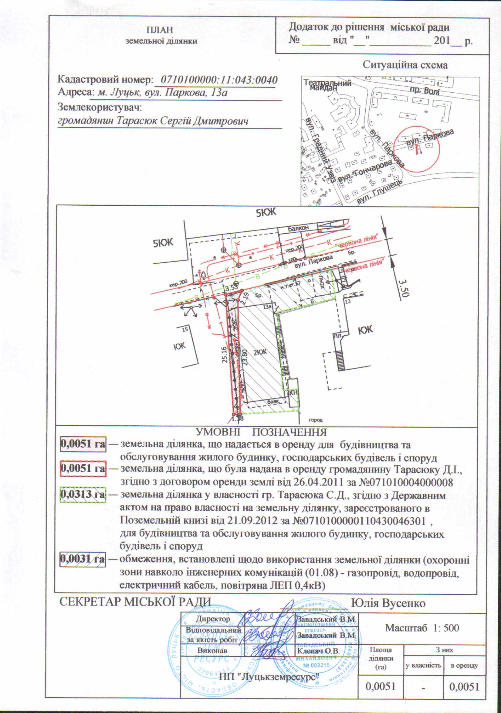 Про надання громадянину Тарасюку С.Д. на умовах оренди земельної ділянки для будівництва та обслуговування жилого будинку, господарських будівель і споруд на вул. Парковій, 13а (площею 0,0051 га).