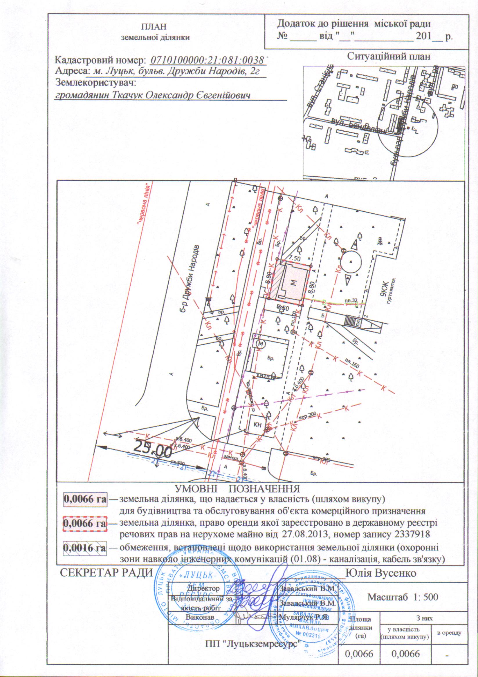 2. Зобов’язати громадянина Ткачука Олександра Євгенійовича в місячний строк з моменту прийняття цього рішення укласти з Луцькою міською радою договір про оплату авансового внеску в рахунок оплати ціни земельної ділянки.