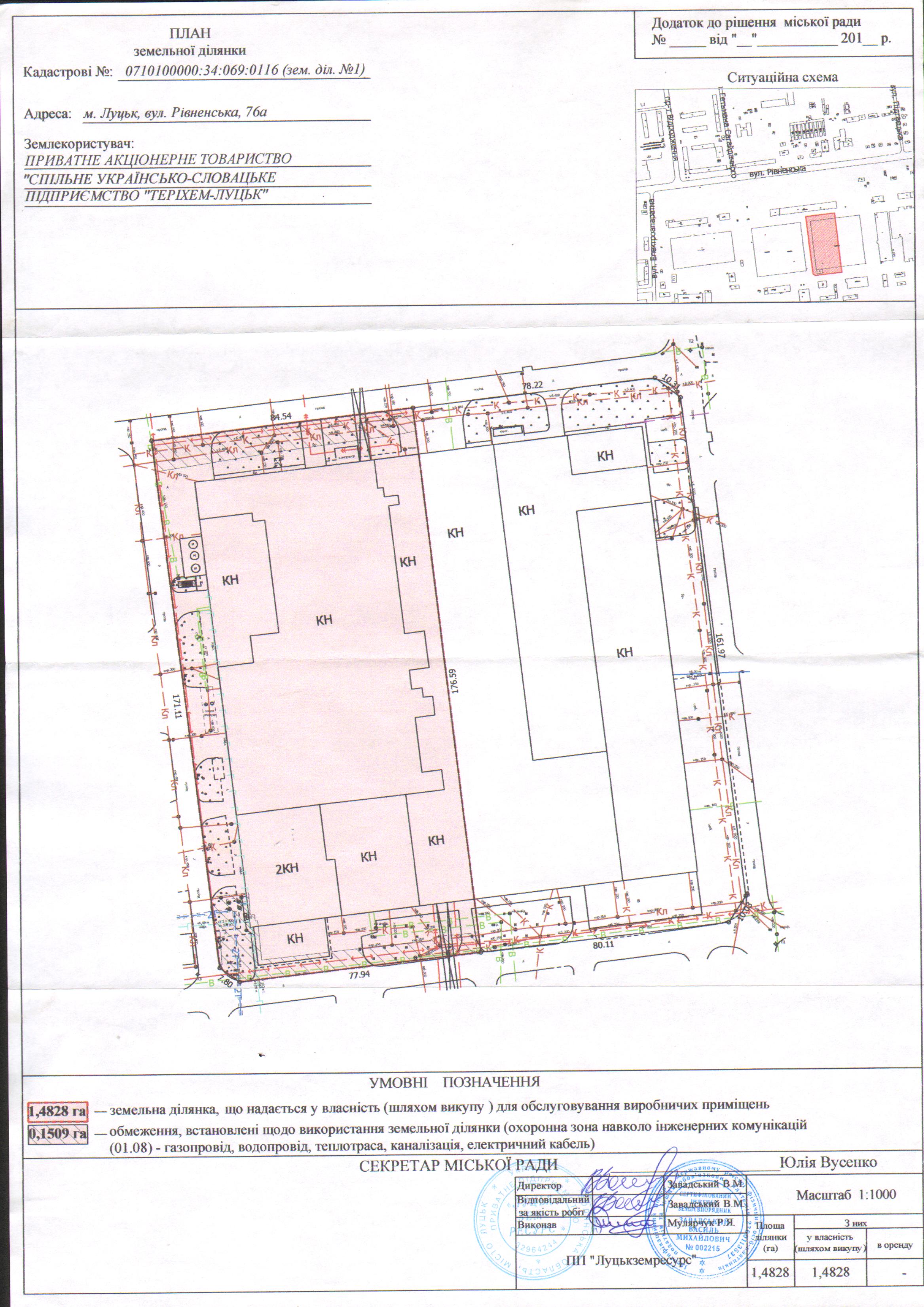 1. Надати ПРИВАТНОМУ АКЦІОНЕРНОМУ ТОВАРИСТВУ “СПІЛЬНЕ УКРАЇНСЬКО-СЛОВАЦЬКЕ ПІДПРИЄМСТВО “ТЕРІХЕМ - ЛУЦЬК” дозвіл на проведення експертної грошової оцінки земельної ділянки на вул. Рівненській, 76а, площею 1,4828 га, кадастровим номером 0710100000:34:069:0116, для обслуговування виробничих приміщень, згідно з додатком.
