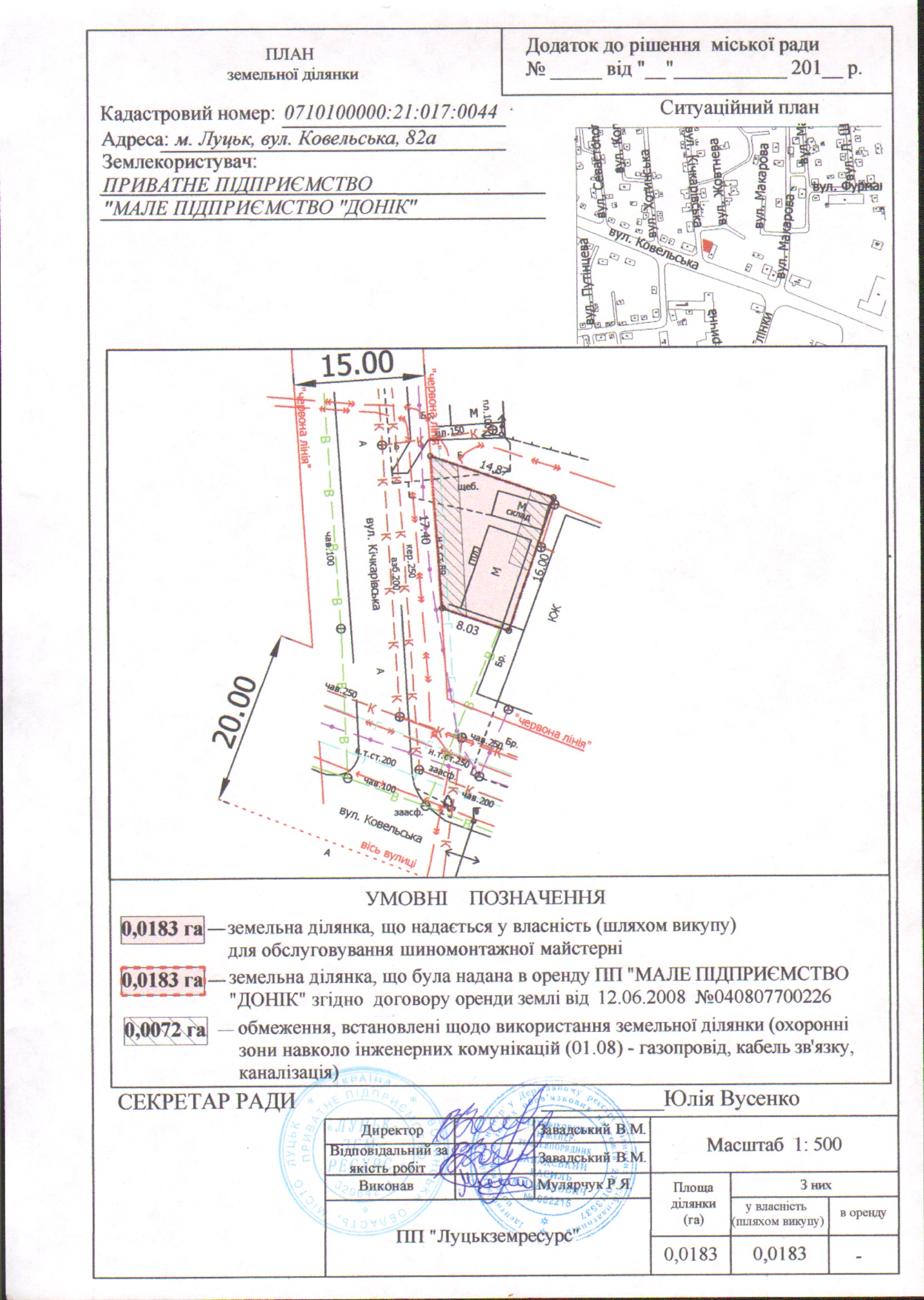 2. Зобов’язати ПРИВАТНЕ ПІДПРИЄМСТВО “МАЛЕ ПІДПРИЄМСТВО “ДОНІК” в місячний строк з моменту прийняття цього рішення укласти з Луцькою міською радою договір про оплату авансового внеску в рахунок оплати ціни земельної ділянки.