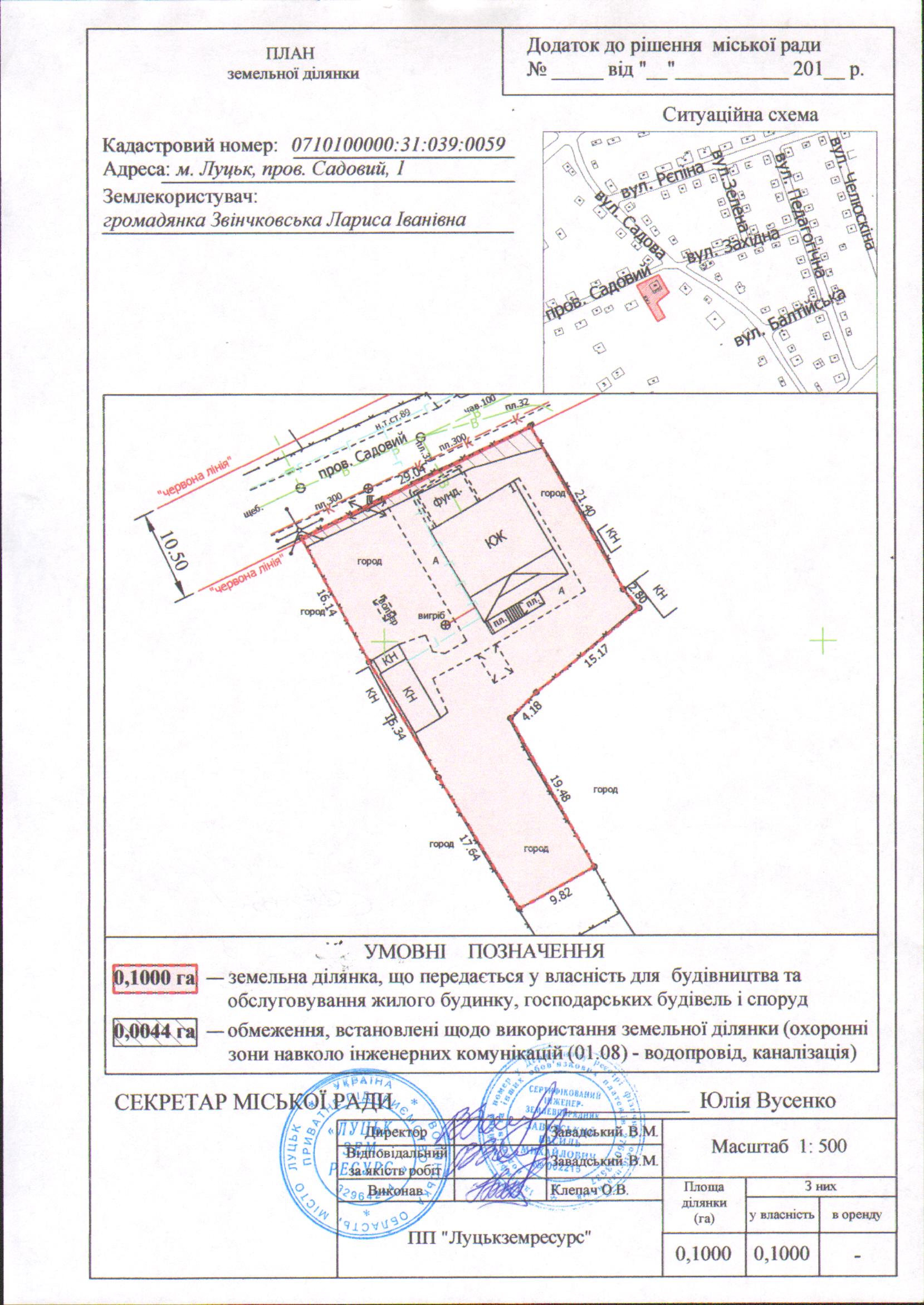 Про передачу громадянці Звінчковській Л.І. безоплатно у власність земельної ділянки для будівництва та обслуговування жилого будинку, господарських будівель і споруд на пров. Садовому, 1.