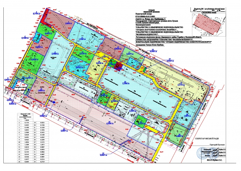 Розглянувши клопотання ТОВАРИСТВА З ОБМЕЖЕНОЮ ВІДПОВІДАЛЬНІСТЮ «ЛУЦЬКА КАРТОННО-ПАПЕРОВА ФАБРИКА», ТОВАРИСТВА З ОБМЕЖЕНОЮ ВІДПОВІДАЛЬНІСТЮ «ВОЛИНЬЗАХІДРЕСУРС», Регіонального відділення фонду Державного майна України у Волинській області, ПРИВАТНОГО АКЦІОНЕРНОГО ТОВАРИСТВА «ВОЛИНЬОБЛЕНЕРГО», КОМУНАЛЬНОГО ПІДПРИЄМСТВА «ЛУЦЬКЕ ПІДПРИЄМСТВО ЕЛЕКТРОТРАНСПОРТУ», громадянки Ткачук Юлії Юріївни щодо поділу земельної ділянки комунальної власності на вул. Карбишева, 3, яка перебуває у користуванні для обслуговування адміністративних та господарських споруд, витяг з Державного земельного кадастру про земельну ділянку від 24.06.2017 № НВ-0000649382017, рішення Луцької міської ради від 29.10.2014 № 65/19 «Про припинення Луцькому картонно-руберойдовому заводу права постійного користування земельними ділянками на вул. Карбишева, 3», інформаційну довідку з Державного реєстру речових прав на нерухоме майно від 23.06.2017, відповідно до якої право власності Луцької міської ради на земельну ділянку площею 38,2309 га зареєстровано у Державному реєстрі речових прав на нерухоме майно від 28.07.2016, номер запису про право власності: 15724983, технічну документацію із землеустрою щодо поділу та об'єднання земельних ділянок на вул. Карбишева, 3, керуючись статтями 12, 79-1, 186 Земельного кодексу України, статтею 56 Закону України «Про землеустрій», статтею 27 Закону України «Про Державний земельний кадастр», Законом України «Про внесення змін до деяких законодавчих актів України щодо розмежування земель державної та комунальної власності», статтею 26 Закону України «Про місцеве самоврядування в Україні», Законом України «Про державну реєстрацію речових прав на нерухоме майно та їх обтяжень», пунктами 135-136 Постанови Кабінету Міністрів України від 17.10.2012 № 1051 «Про затвердження Порядку ведення Державного земельного кадастру», міська рада