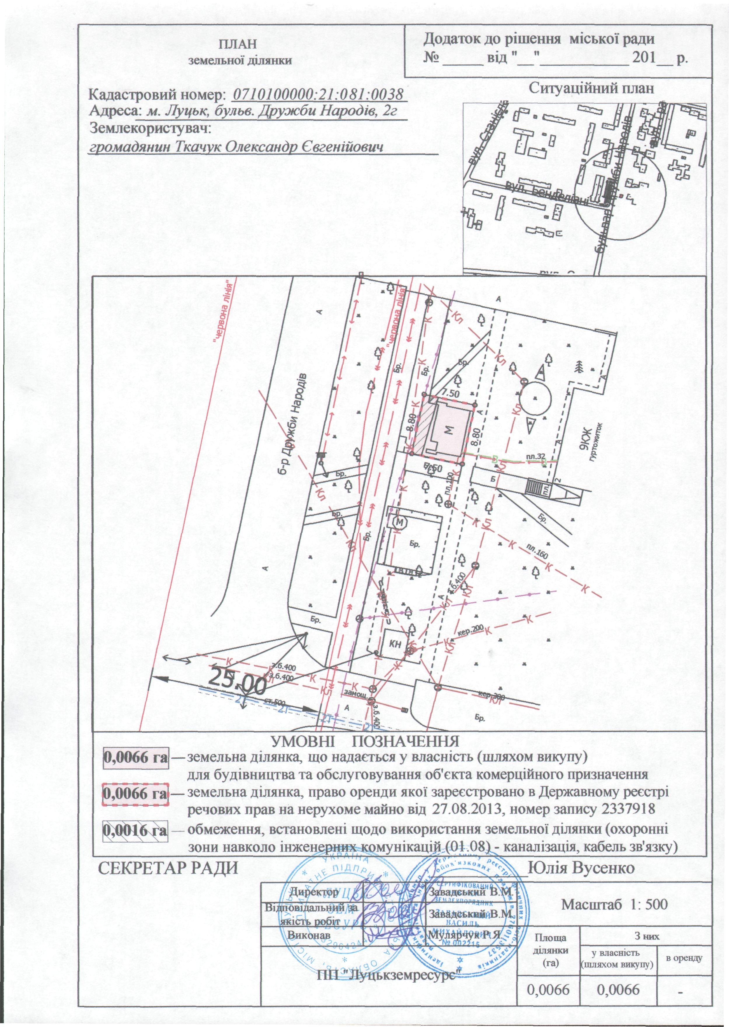 2. Затвердити ціну продажу земельної ділянки на вул. Дубнівській, 36в, площею 0,0066 га, кадастровим номером 0710100000:22:130:0034, визначену відповідно до звіту про експертну грошову оцінку земельної ділянки від 07 вересня 2016 року, в сумі 17 863 (сімнадцять тисяч вісімсот шістдесят три) гривні 00 копійок.