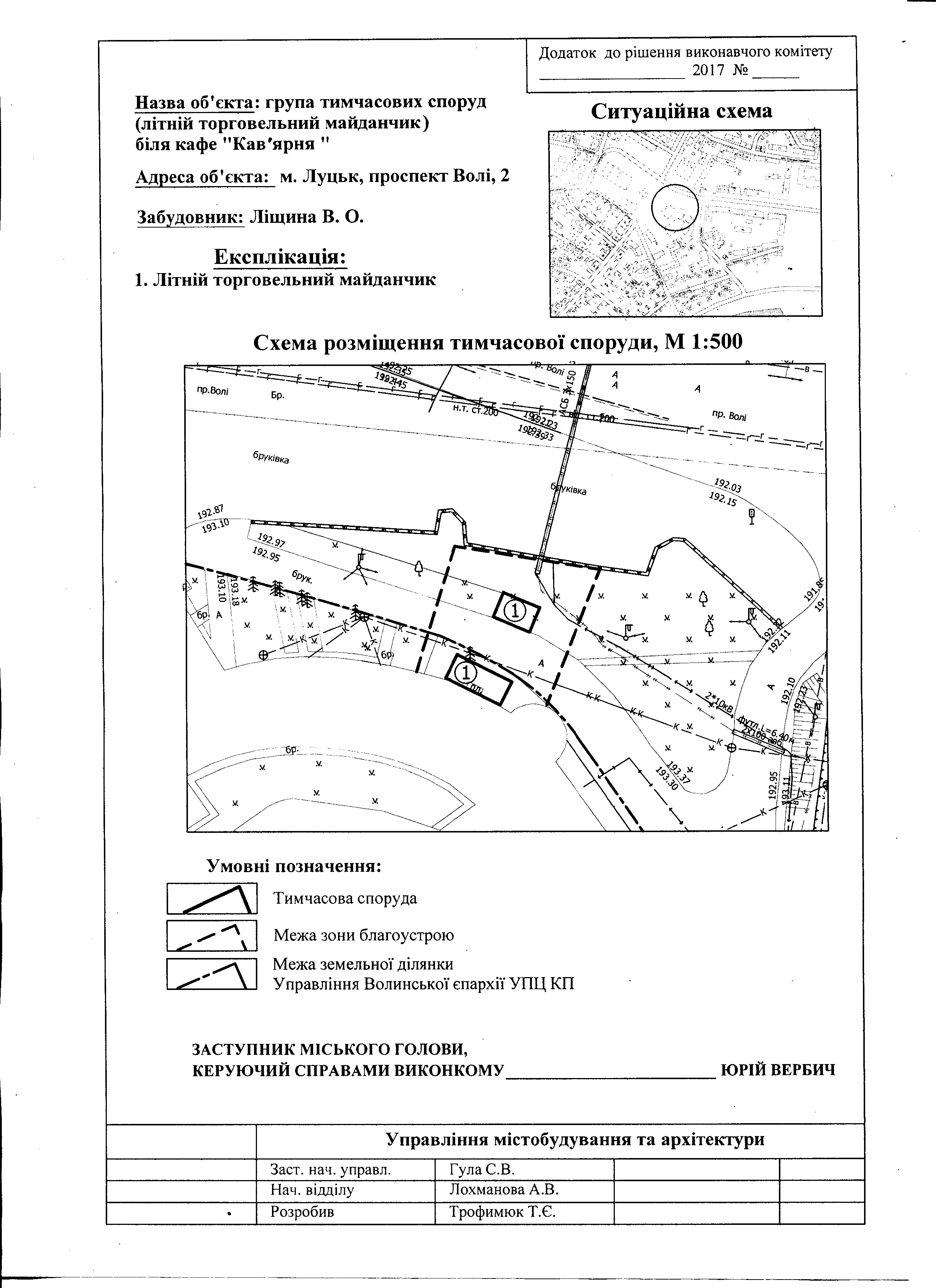 Про розміщення підприємцем Ліщиною В.О. групи тимчасових споруд на проспекті Волі, 2
