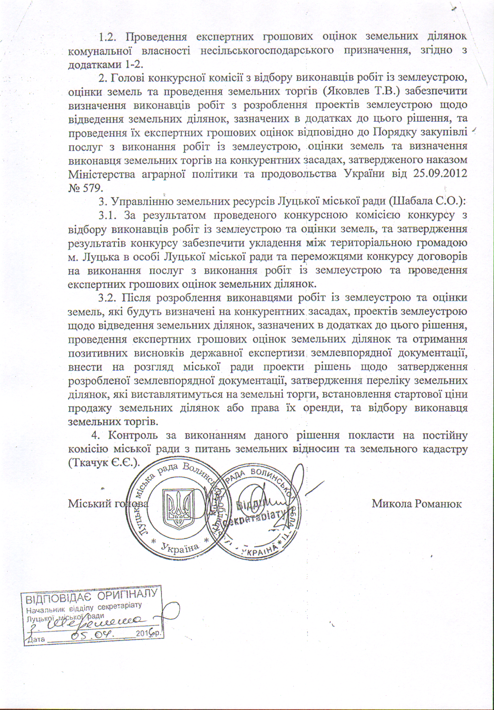 2. Контроль за виконанням рішення покласти на постійну комісію міської ради з питань земельних відносин та земельного кадастру (Ткачук Є.Є.).