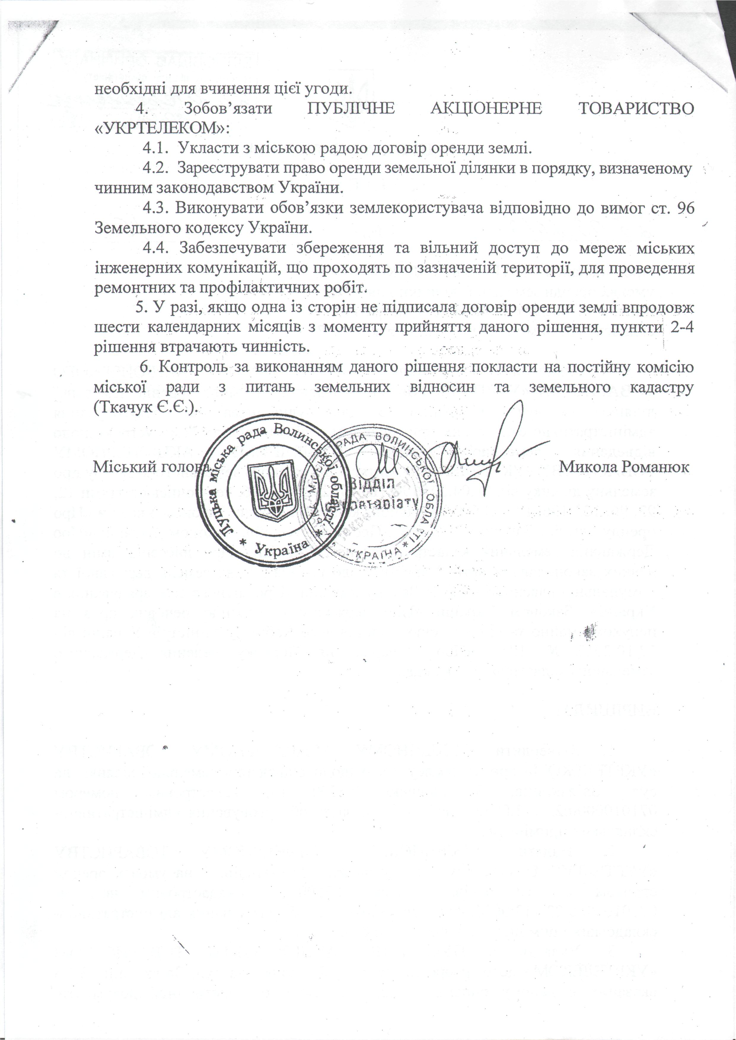 3. Контроль за виконанням даного рішення покласти на постійну комісію міської ради з питань земельних відносин та земельного кадастру (Ткачук Є.Є.).