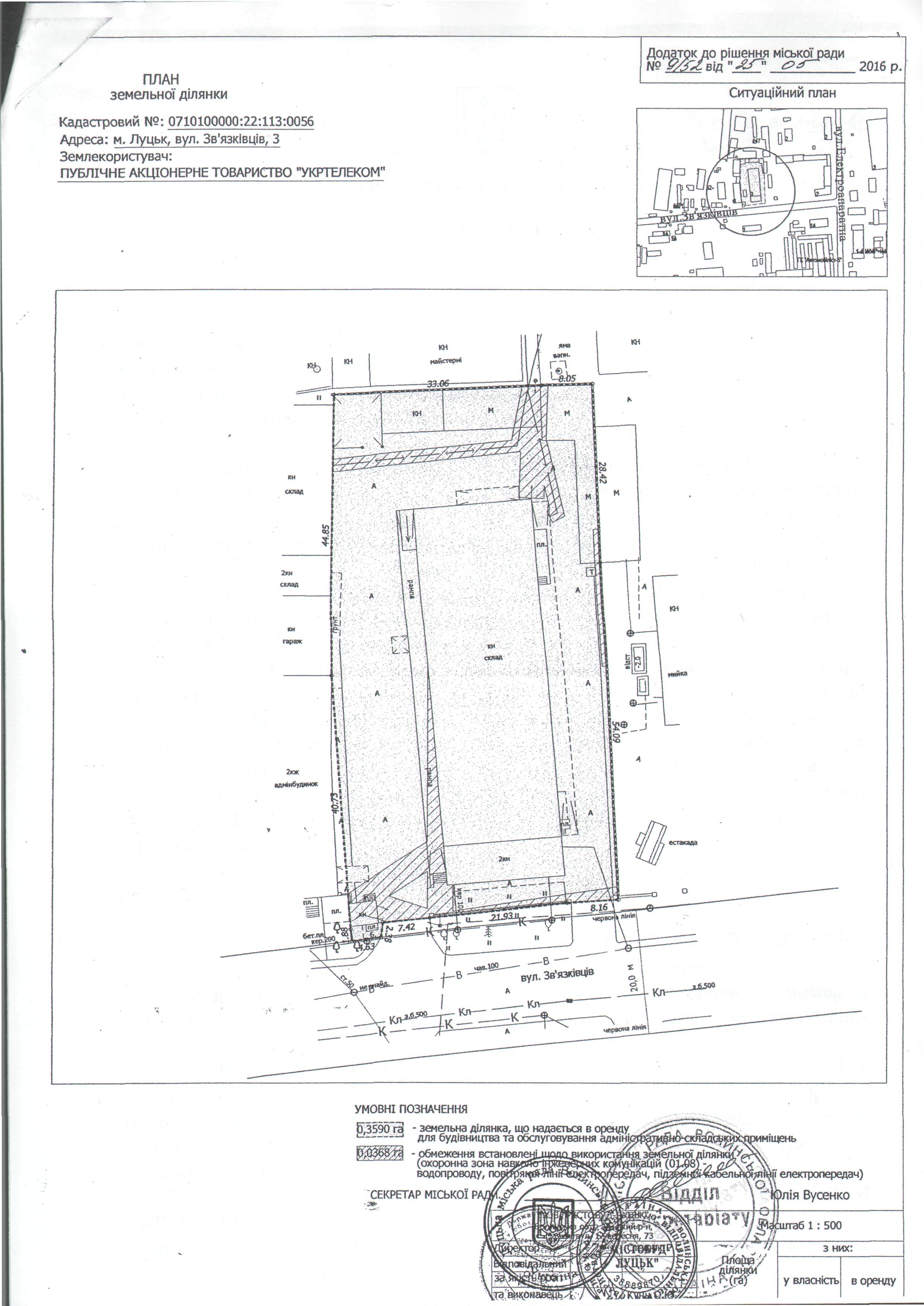 1. Скасувати пункти 2-5 рішення Луцької міської ради від 25.05.2016 № 9/52 «Про надання ПАТ «УКРТЕЛЕКОМ» на умовах оренди земельної ділянки для будівництва та обслуговування адміністративно-складських приміщень на вул. Зв’язківців, 3».