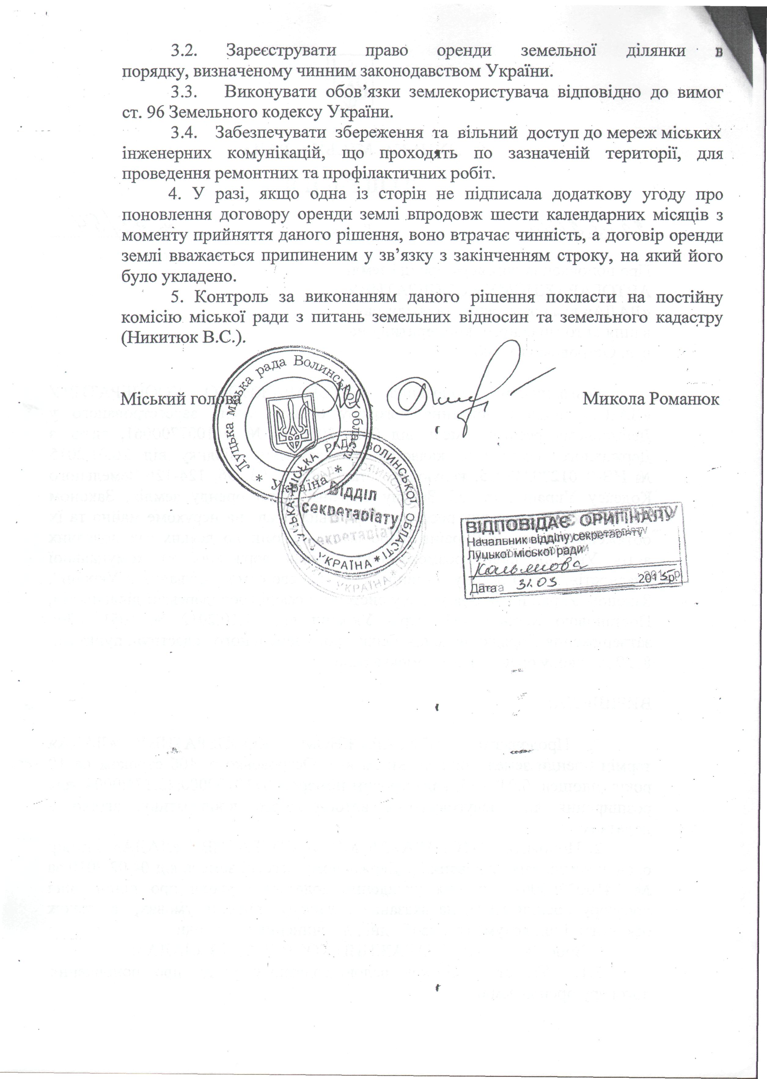 3.3. Повернути управлінню земельних ресурсів оригінали двох примірників укладених додаткових угод про поновлення договору оренди землі.