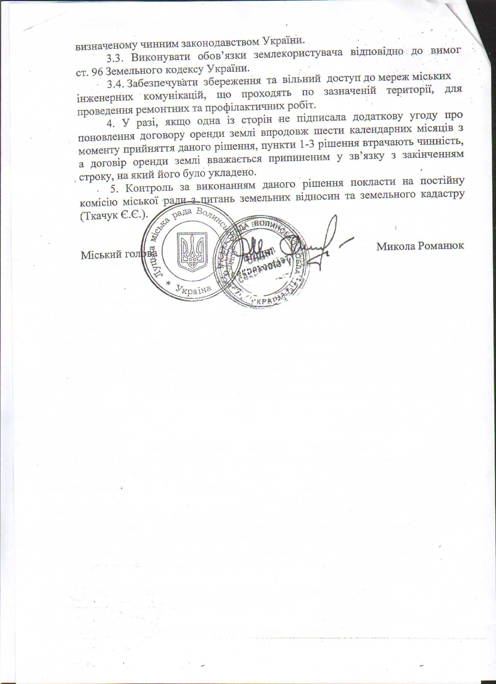 3. Контроль за виконанням даного рішення покласти на постійну комісію міської ради з питань земельних відносин та земельного кадастру (Ткачук Є.Є.).