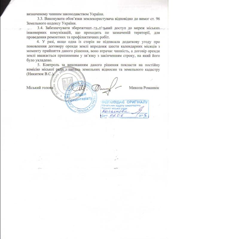 3.2. Повернути управлінню земельних ресурсів оригінали двох примірників укладених додаткових угод про поновлення договору оренди землі.