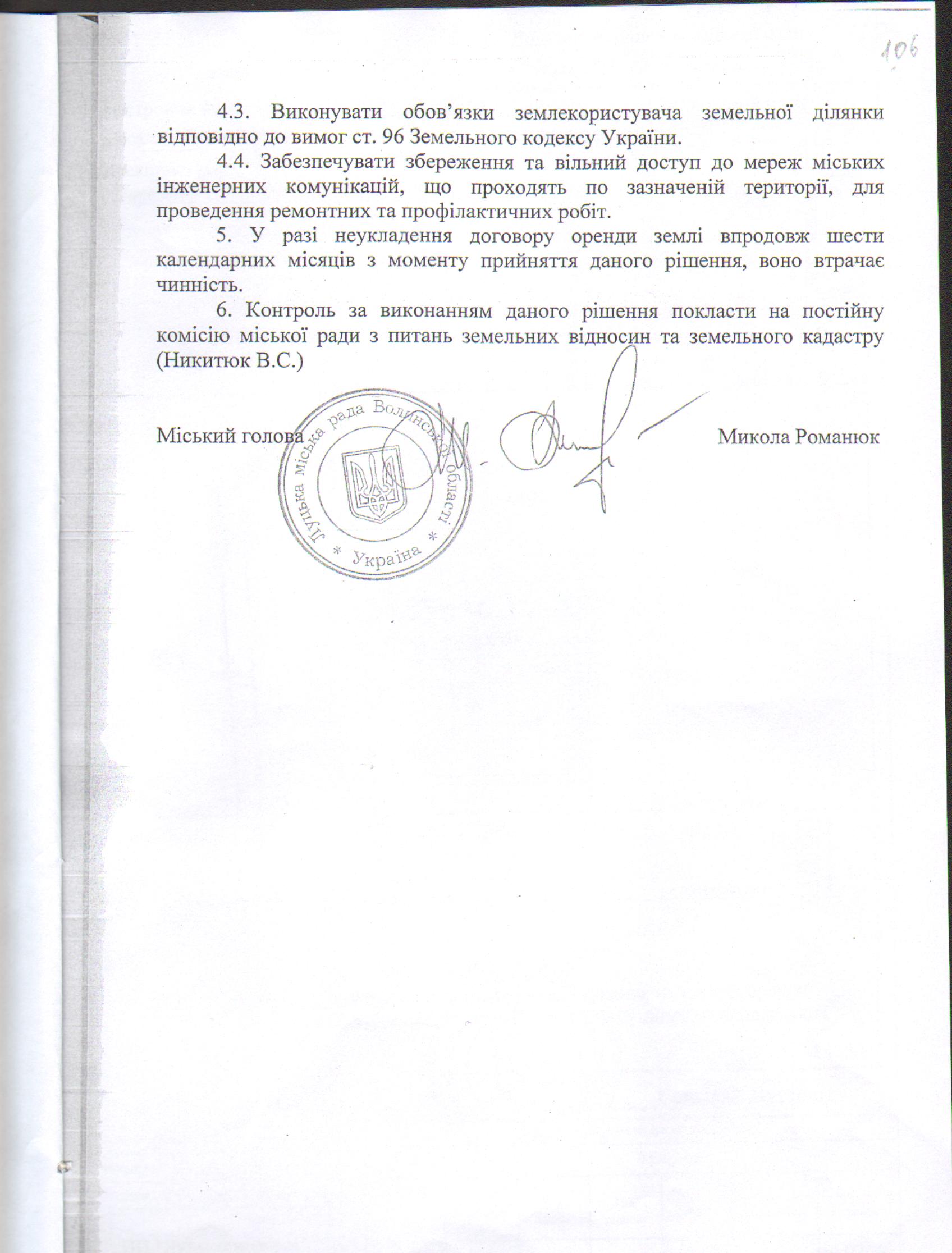 4.3. Виконувати обов’язки землекористувача відповідно до вимог ст. 96 Земельного кодексу України.
