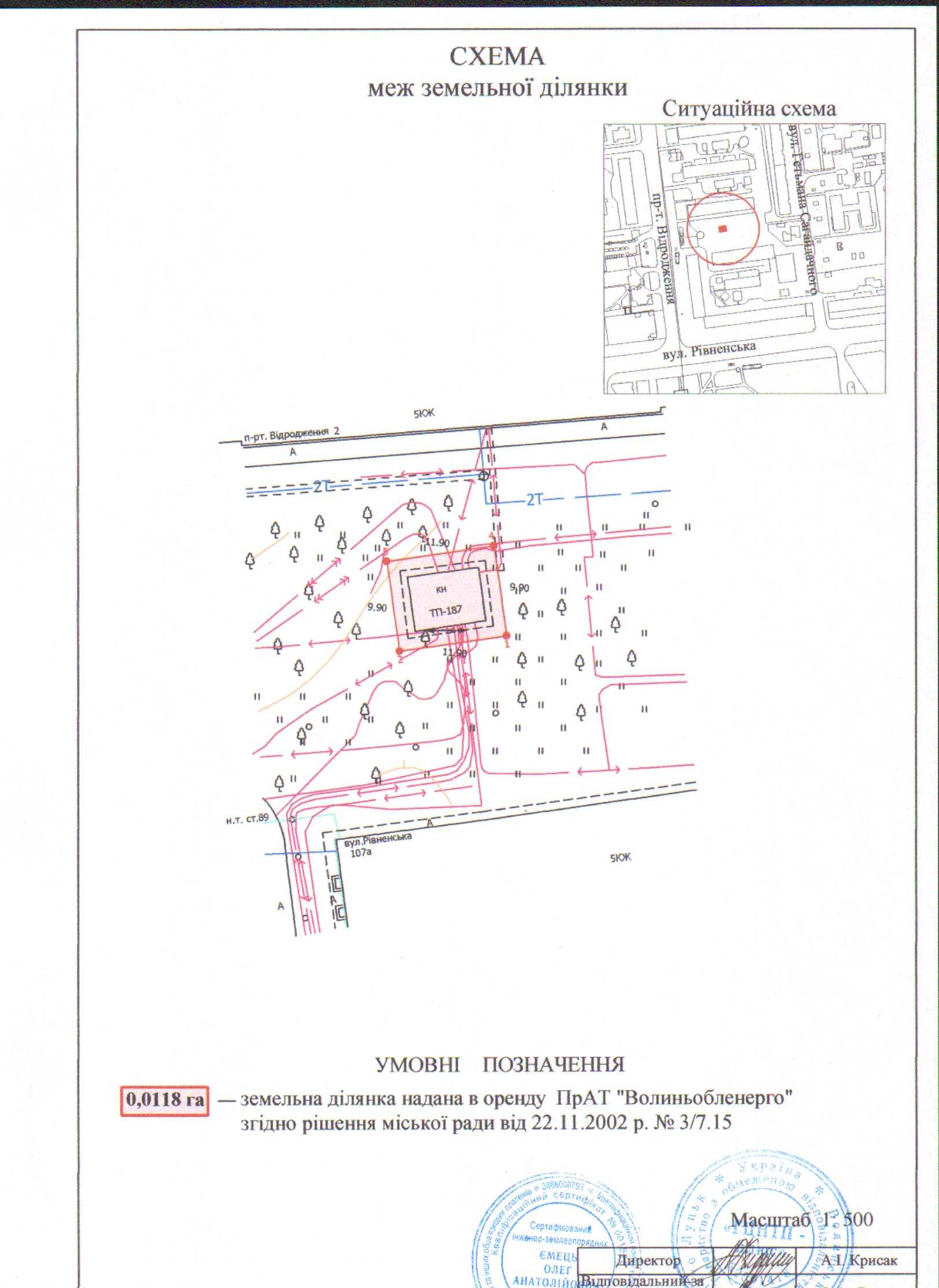 Розглянувши клопотання ПРИВАТНОГО АКЦІОНЕРНОГО ТОВАРИСТВА «ВОЛИНЬОБЛЕНЕРГО» щодо внесення змін в додаток до рішення Луцької міської ради від 22.11.2002 № 3/7.15 «Про затвердження проекту відведення та надання відкритому акціонерному товариству «Волиньобленерго» земельних ділянок на умовах оренди», рішення Луцької міської ради від 22.11.2002 № 3/7.15 «Про затвердження проекту відведення та надання відкритому акціонерному товариству «Волиньобленерго» земельних ділянок на умовах оренди», витяг з Державного земельного кадастру про земельну ділянку від 25.01.2018 № НВ-0703765472018, розпорядження Луцького міського голови від 19.10.2017 № 560 «Про присвоєння адреси об'єкту нерухомості ПрАТ «Волиньобленерго» на пр-ті Відродження, 2-б», керуючись статтями 12, 93 Земельного кодексу України, Законом України «Про Державний земельний кадастр», статтею 4 Закону України «Про державну реєстрацію речових прав на нерухоме майно та їх обтяжень», Законом України «Про внесення змін до деяких законодавчих актів України щодо розмежування земель державної та комунальної власності», статтею 26 Закону України «Про місцеве самоврядування в Україні», Постановою Кабінету Міністрів України від 17.10.2012 № 1051 «Про затвердження Порядку ведення Державного земельного кадастру», міська рада