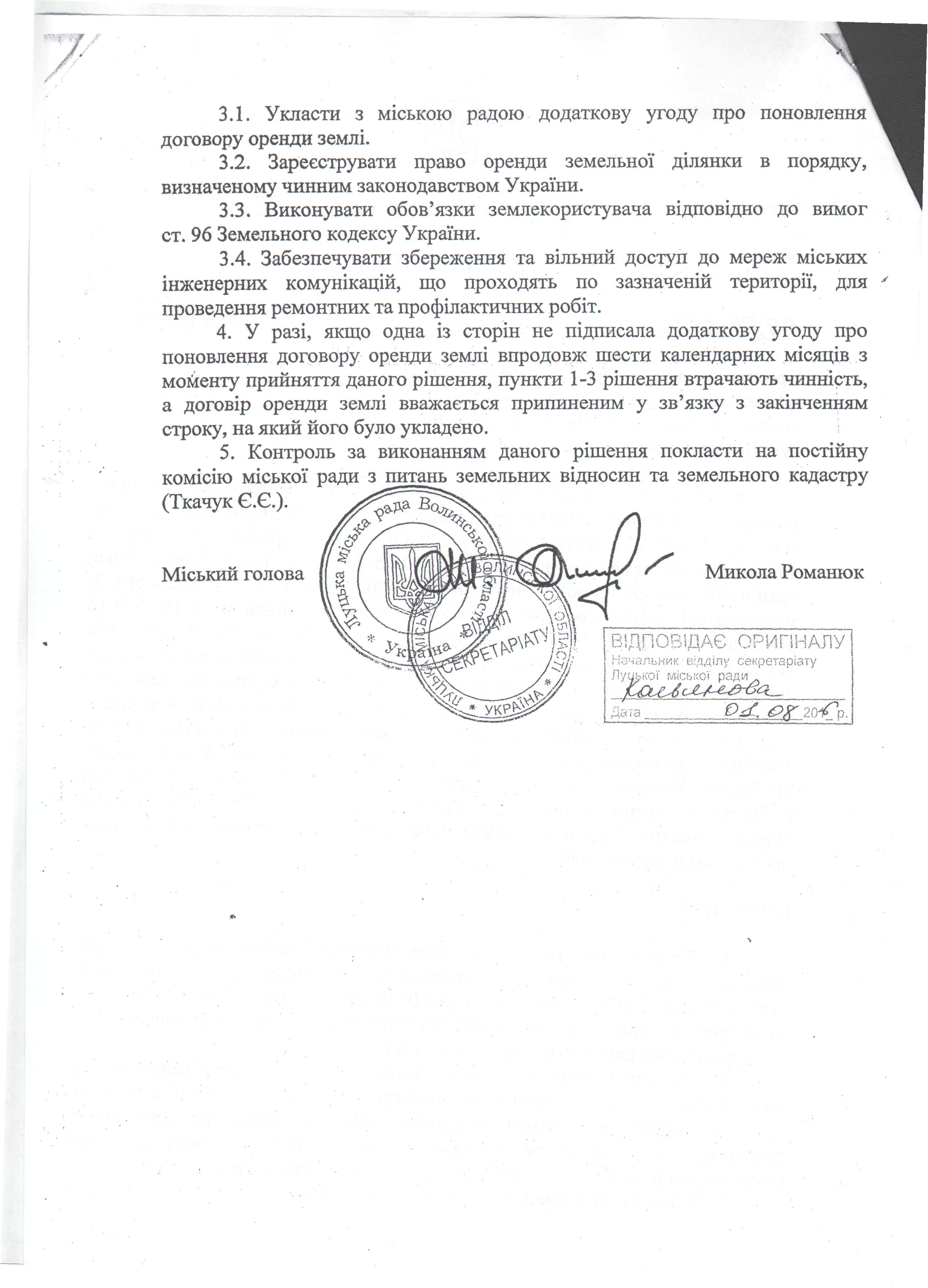 2. Контроль за виконанням даного рішення покласти на постійну комісію міської ради з питань земельних відносин та земельного кадастру (Ткачук Є.Є.).