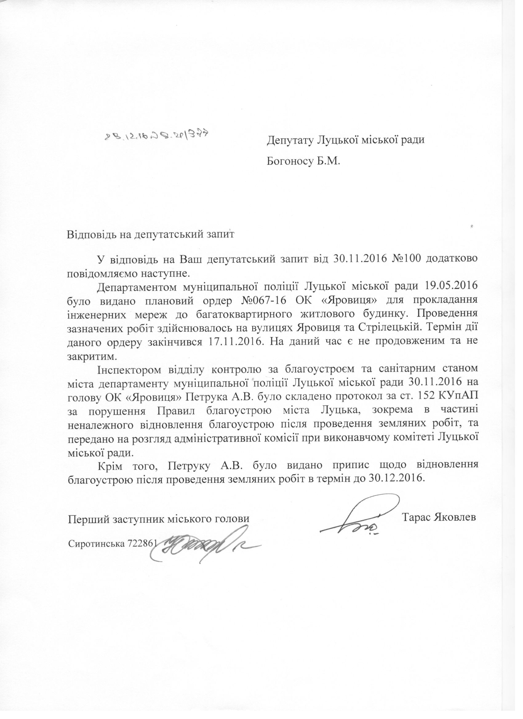 2. Про результати розгляду запиту проінформувати депутата міської ради у термін визначений чинним законодавством.
