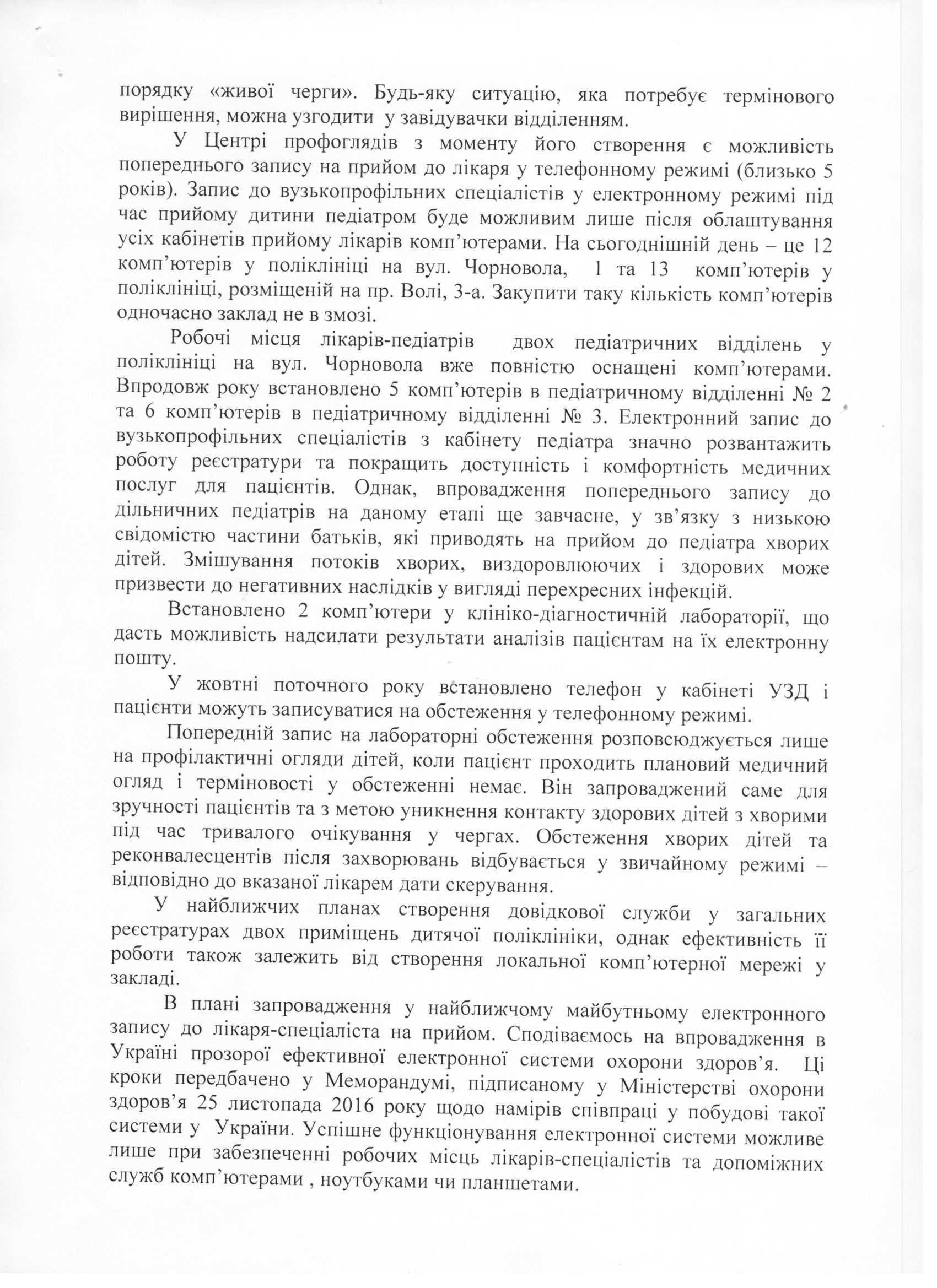 1. Підтримати запит депутата міської ради Мовяк А.В. до міського голови Романюка М.Я. щодо впорядкування системи записів до лікаря в дитячих поліклініках (додається).