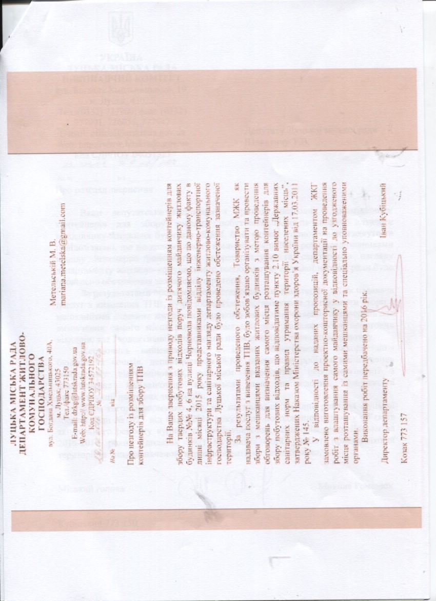 Про запит депутата міської ради Шляхтича Т.В. щодо недотримання санітарно-гігієнічних норм та правил благоустрою при розміщенні контейнерів для збору побутових відходів