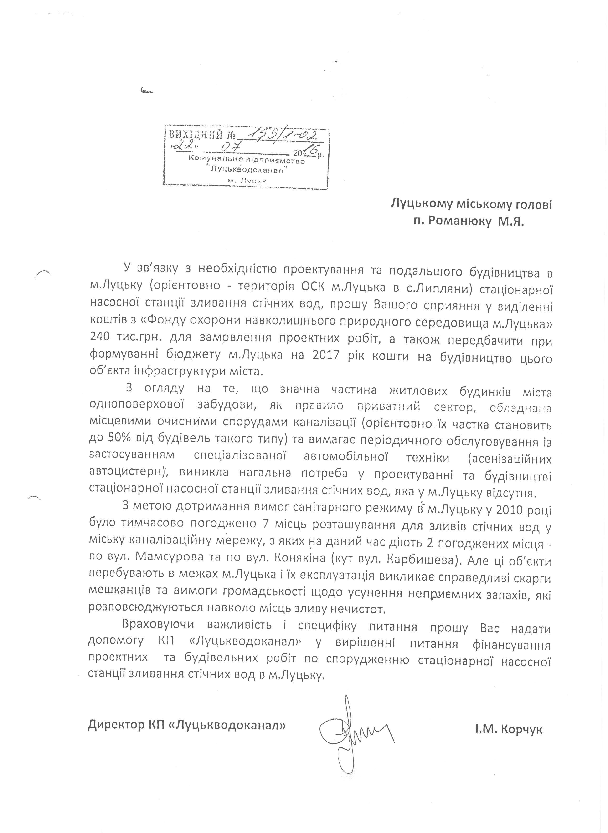 Про запит депутата міської ради Яручика М.О. щодо будівництва станції прийому нечистот