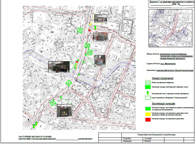- від 05.04.2012 № 229-1 «Про затвердження комплексних схем розміщення тимчасових споруд для провадження підприємницької діяльності» зі змінами від 21.06.2012 № 429-1, 06.03.2013 № 145-1, 16.07.2014 № 406-1, 03.09.2014 № 518-1, 06.05.2015 № 251-1, 22.07.2015 № 423-1, 06.04.2016 № 203-1;