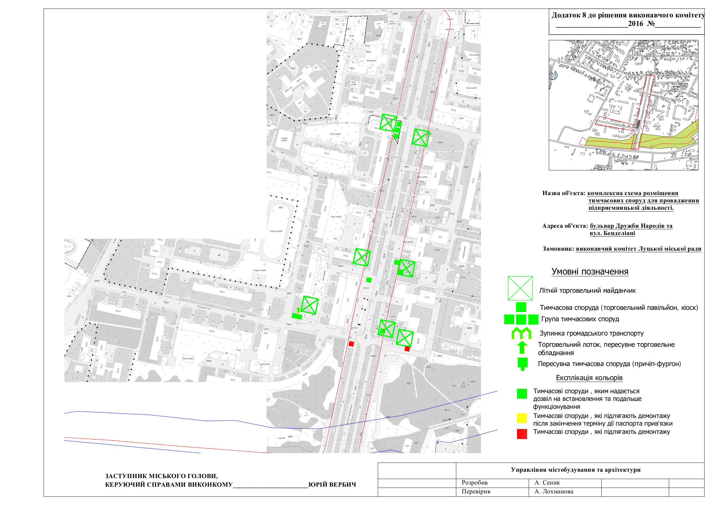 1. Затвердити комплексні схеми розміщення тимчасових споруд для провадження підприємницької діяльності на вулицях Кравчука, Конякіна, Дубнівській, Окружній, Боженка, Станіславського, Гнідавській, Бенделіані, Ветеранів, Воїнів-інтернаціоналістів та на бульварі Дружби Народів згідно з додатками 1-10.