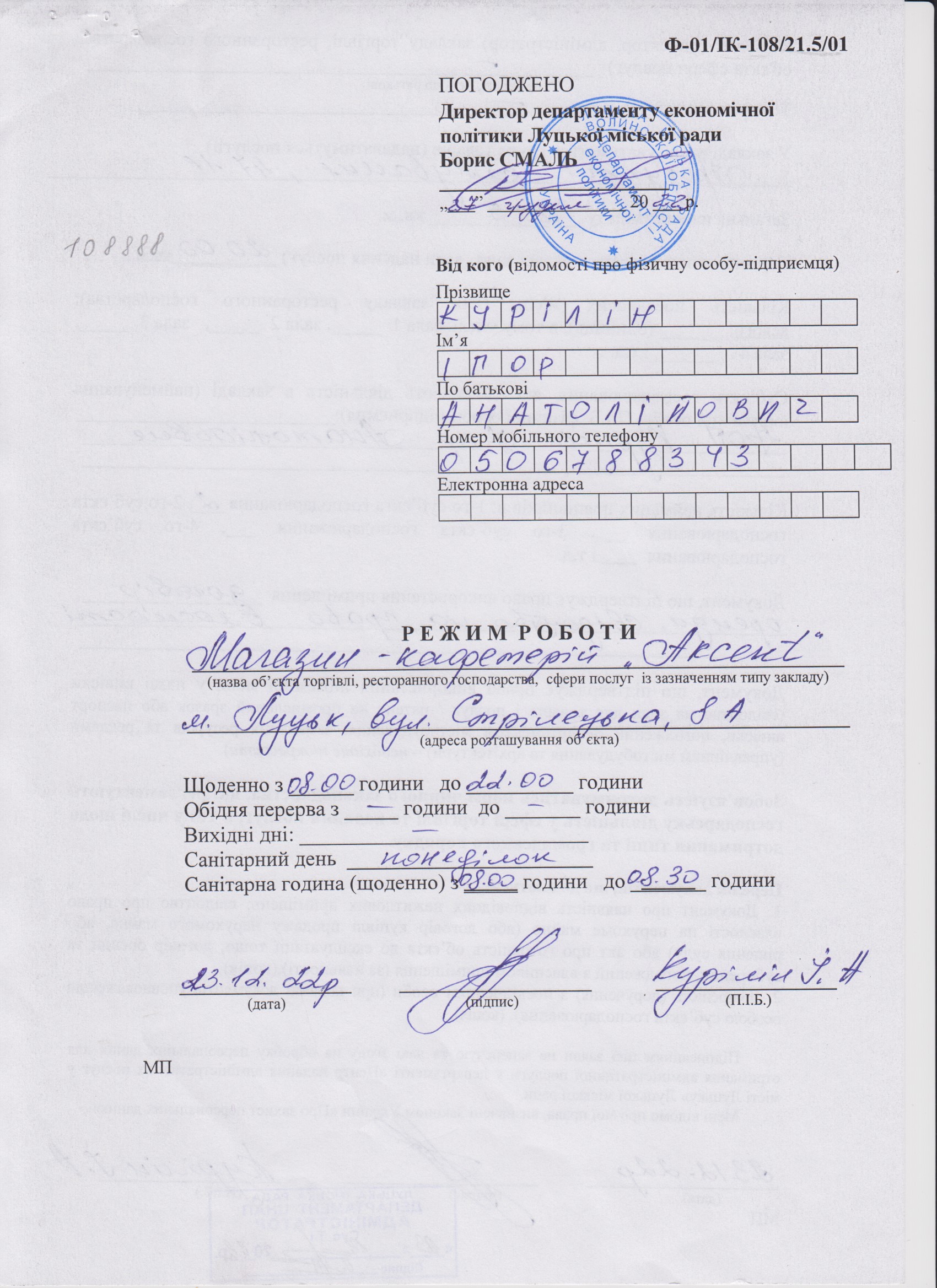 Режим роботи магазину "Akcent" на вул. Cтрілецькій, 8А