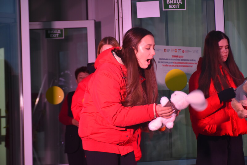 Мистецький перформанс у виконанні учасників студії Наталії Журавльової та студентів Волинського фахового коледжу імені Ігоря Стравінського став символічним нагадуванням: іноді, щоб зупинити насильство, потрібно наважитися вийти із зони комфорту.