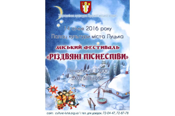 14 січня у Палаці культури відбудеться уже традиційний міський фестиваль “Різдвяні піснеспіви”. Початок заходу о 12 годині і триватиме до 18 години. Організатор фестивалю - управління культури Луцької міської ради.