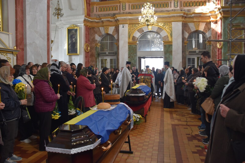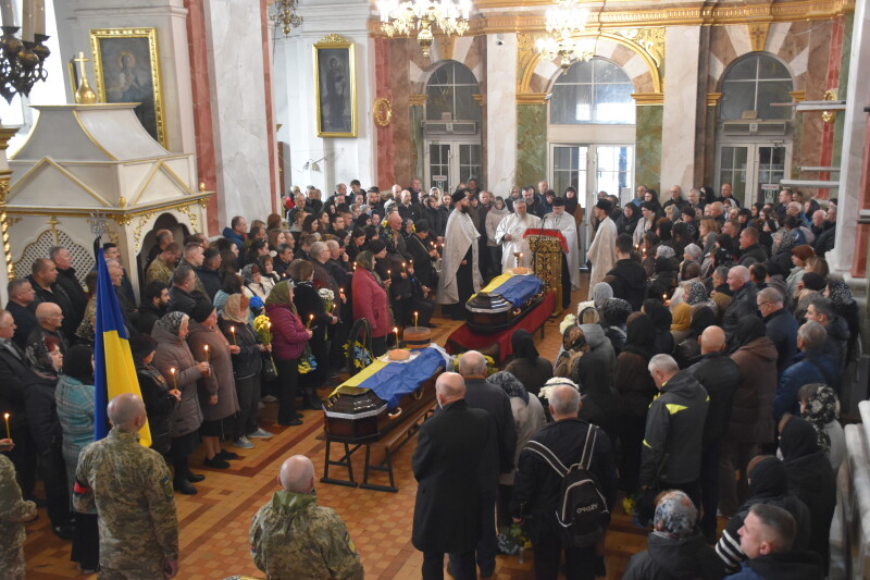 Сьогодні у кафедральному соборі Святої Трійці відбулося відспівування Анатолія Андрусика та Богдана Новосада. Разом із рідними, друзями, бойовими побратимами попрощатися з Героями прийшла й заступник міського голови Ірина Чебелюк.