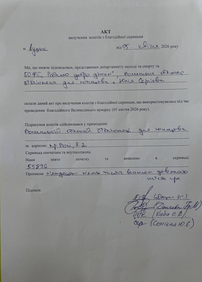 Прозорість збору коштів забезпечено відповідно до встановлених процедур: підрахунок готівки здійснено комісією, про що складено відповідний акт.