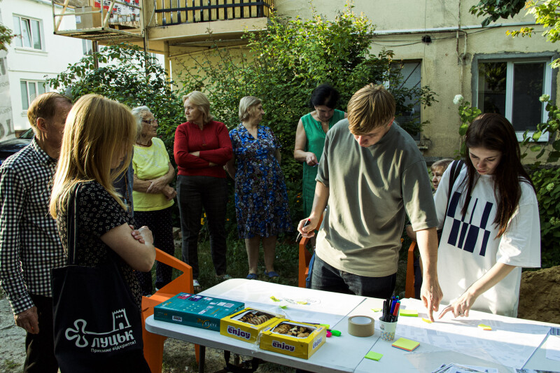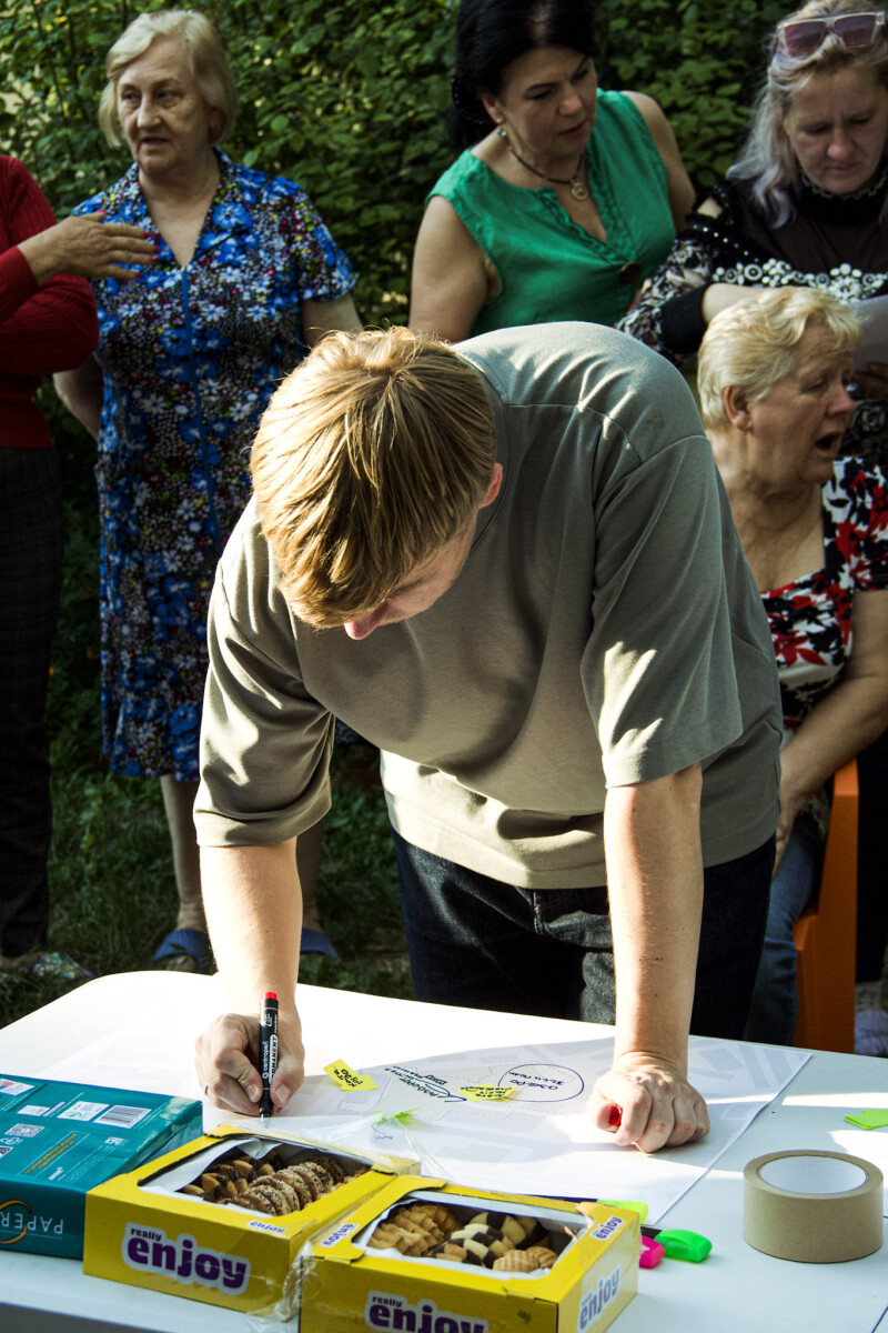 Під час зустрічі обговорювали побутові потреби громади, значення наявного озеленення, питання безпеки та доступності, а також важливість збереження локальних історичних елементів. Мешканці поділилися спогадами про життя двору, згадали старі оборонні вежі, дзвін і колишнє озеро, які колись формували вигляд цієї частини міста.