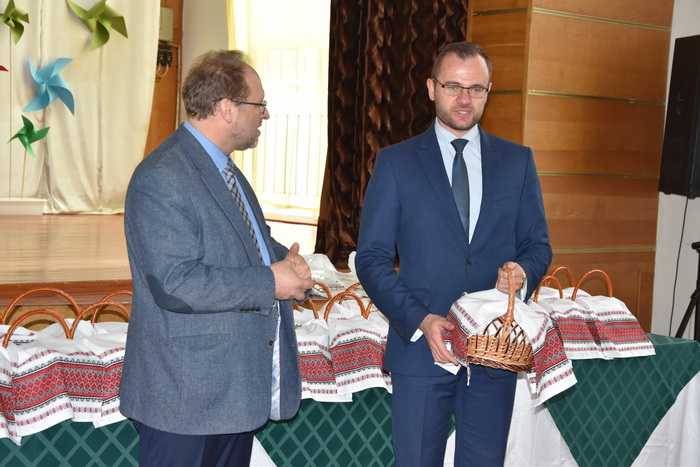 В актовому залі гімназії №4 гостей зустріли виконувач повноважень міського голови Ігор Поліщук, заступник міського голови Григорій Пустовіт, заступник міського голови, керуючий справами виконкому Юрій Вербич, начальник відділу у справах сім'ї та молоді міської ради Олексій Веремійчик, аби вручити їм подарунки — Великодні кошики та сувеніри, які символізують єдність Сходу та Заходу України.